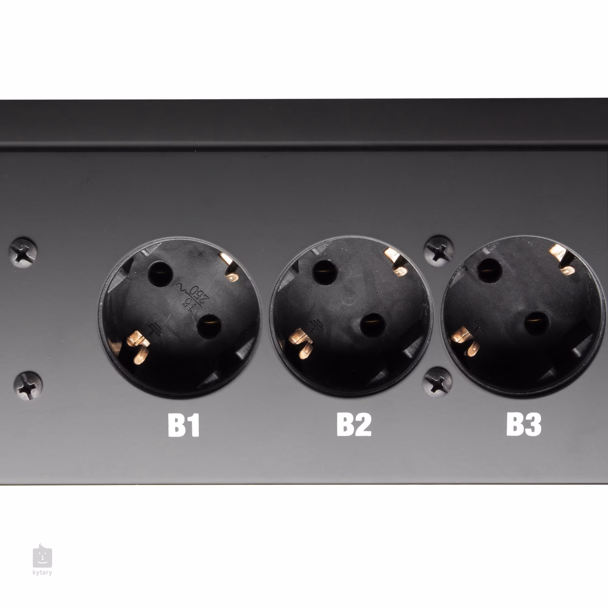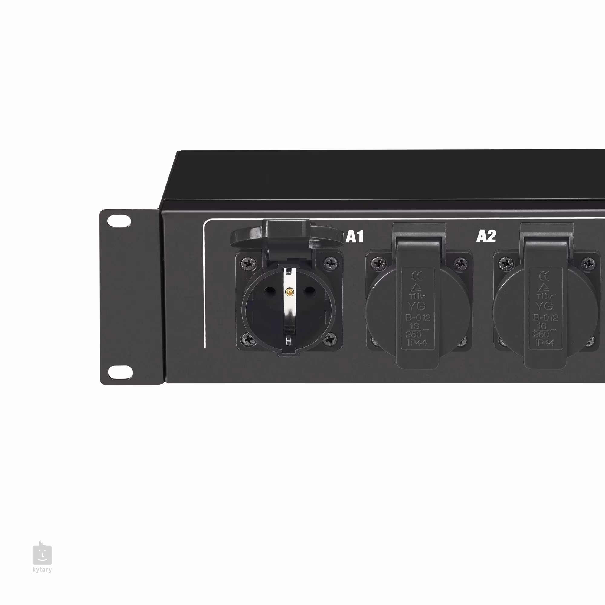 19 hüvelykes rack rendszerhez való tápegység-sín, 9 (CEE 7/7) aljzattal. A sín túlfeszültség-védelemmel és két kapcsolóval rendelkezik, koncerteszközökhöz, próbatermekhez vagy hangstúdiókhoz is alkalmas.
