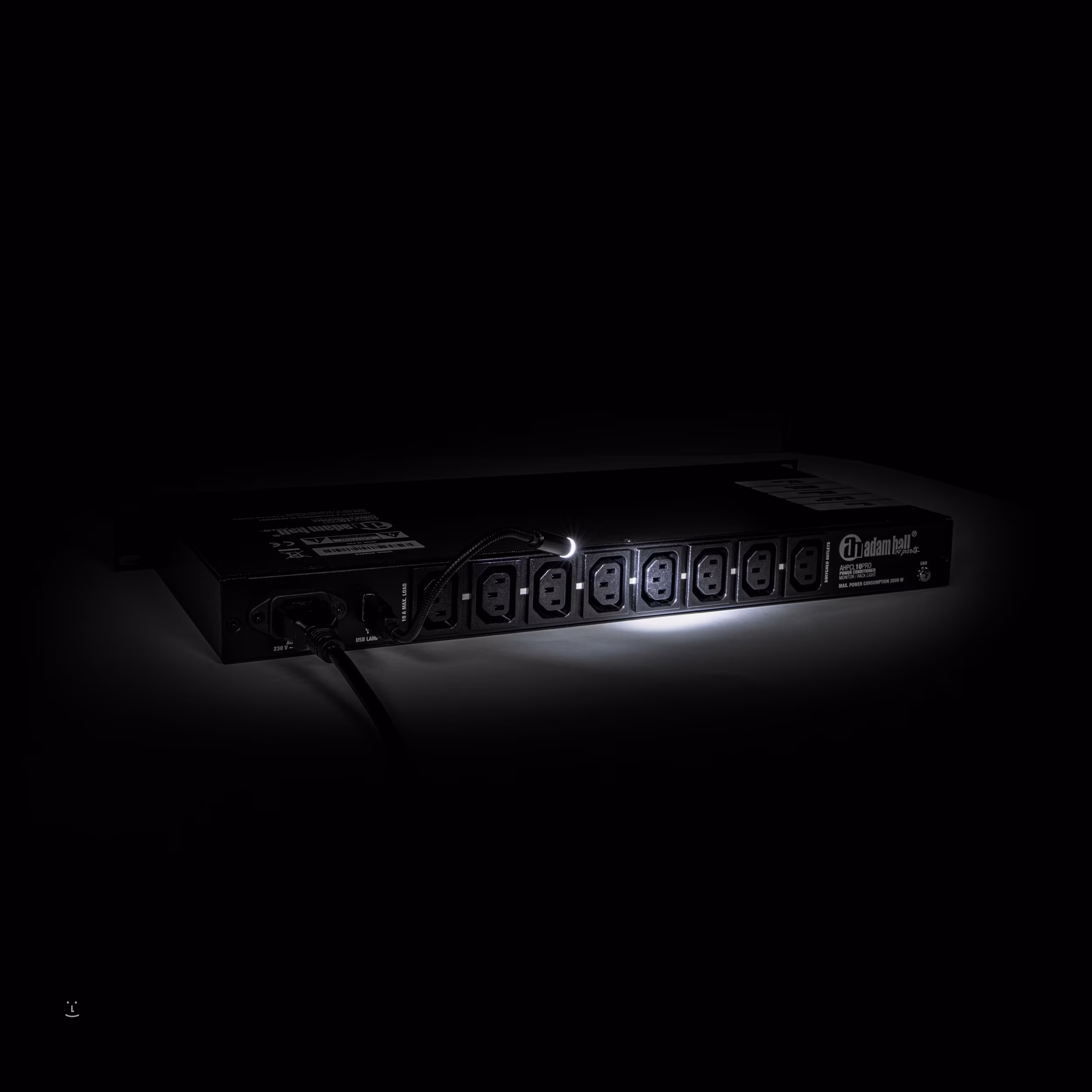 Tápegység 19"-os rack rendszerhez, amely 8 IEC csatlakozót és két LED lámpát tartalmaz a rack maximális láthatósága érdekében. A tápegység túlfeszültség elleni védelemmel, hálózati kapcsolóval és két kijelzővel rendelkezik az áram és a feszültség megjelenítésére, alkalmas a koncertkofferben, próbateremben vagy hangstúdióban is. A csomagban 4 darab 1,8 m hosszúságú IEC-kábel található.