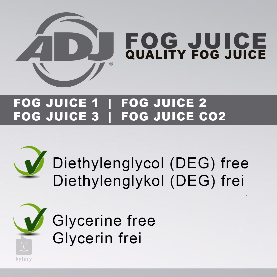 AFog Juice 2 Medium az ADJ-től egy minőségi folyadék, amely szinte minden piacon lévő ködképzőhöz alkalmas. A folyadék vízbázisú, nagy kémiai tisztaságú és közepes fehér ködöt produkál. A Medium verzió a legelterjedtebb változat, és alkalmas a klubokban, diszkókban és partikon használt ködképzőkhöz.