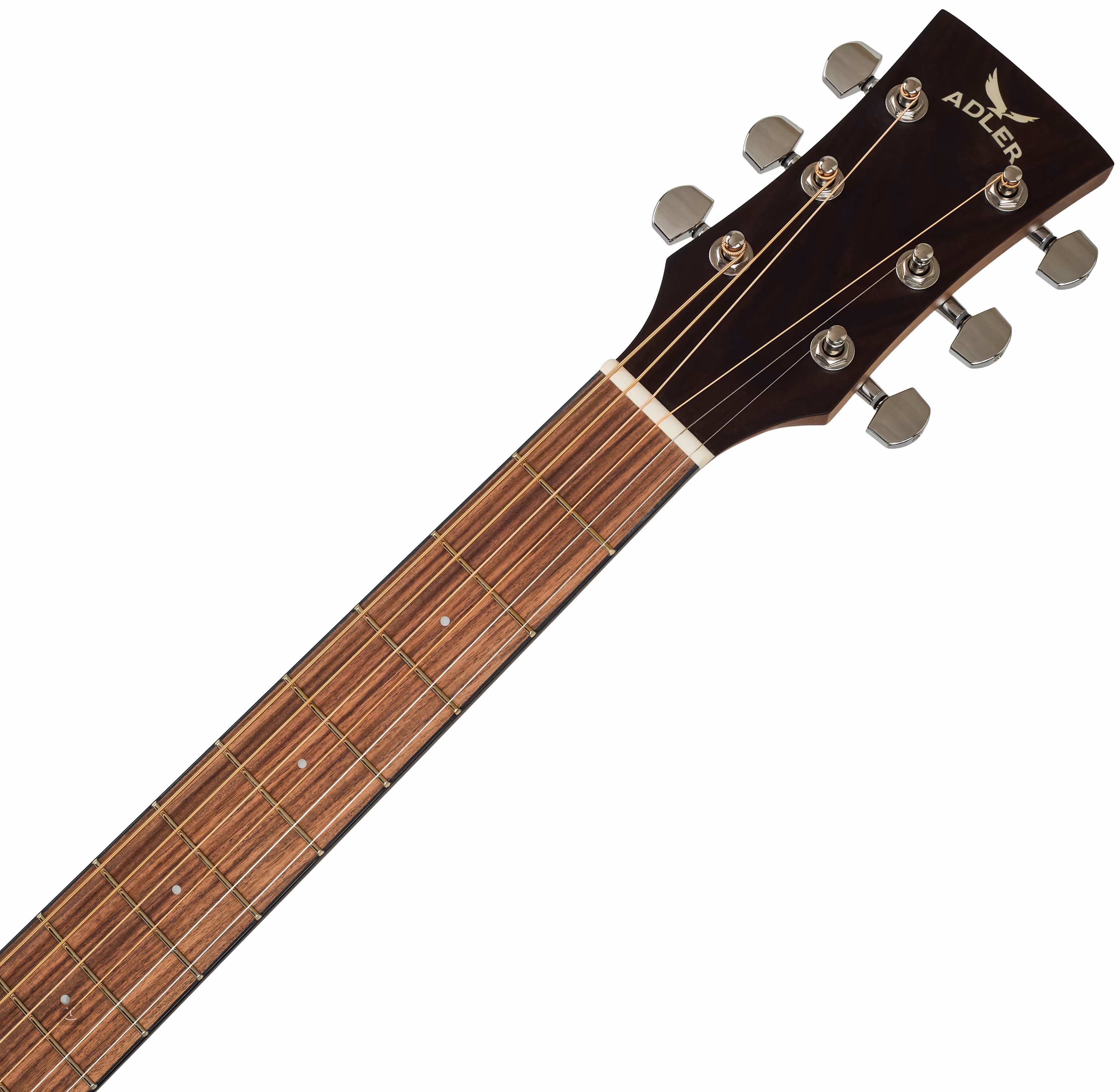 Az Adler GuitarsGE50-CM elektroakusztikus gitár egy modern Grand Auditorium formájú hangszer, amely alkalmas ujjazásra (fingerpicking) és pengetésre is. A gitár elülső fele tömör cédrusból készült, a hátsó fele és az oldalak rétegelt mahagóniból. A mahagóni nyakhoz pau ferro fa fogólap van ragasztva. A fogólapon a pozíciót imitált gyöngyház pontok segítik.