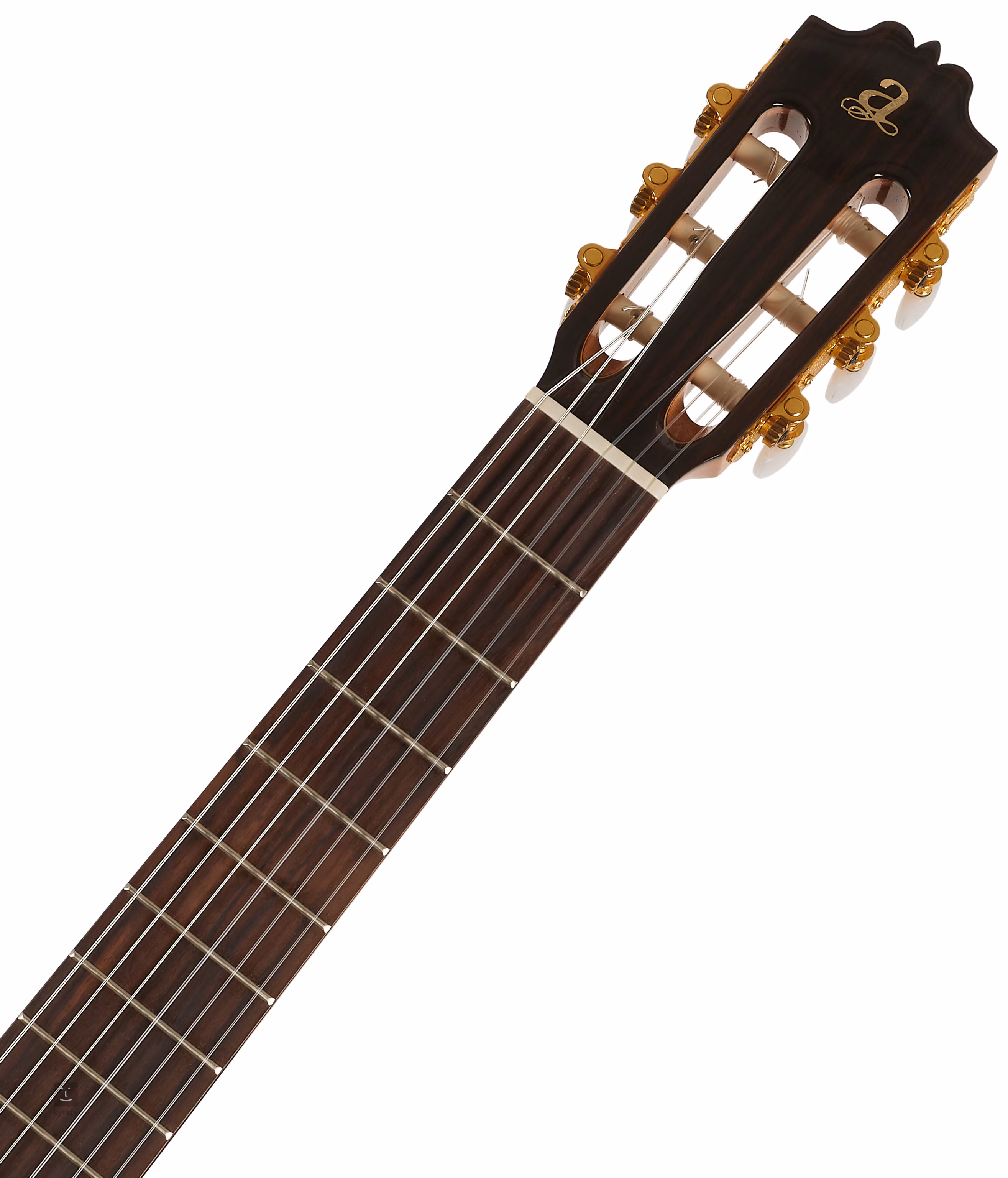 Az Admira A2 EF egy klasszikus elektroakusztikus gitár félmasszív felépítéssel, amely még a legtapasztaltabb zenészek számára is vonzó lehet. A gitár előlapja tömör cédrusból, míg a hátlap és az oldalak laminált sapeléből készültek. Az afrikai mahagóni nyak kabukalli fából készült fogólapra van ragasztva. A jó hangolást a kiváló minőségű klasszikus mechanika aranyszínű kivitelben és kabukalli fejléccel ellátott húrfelerősítés garantálja. A stílusos kivitelezést hagyományos elemek hangsúlyozzák a rozetták, a fa díszítések és a fejlécen található céglogó formájában.