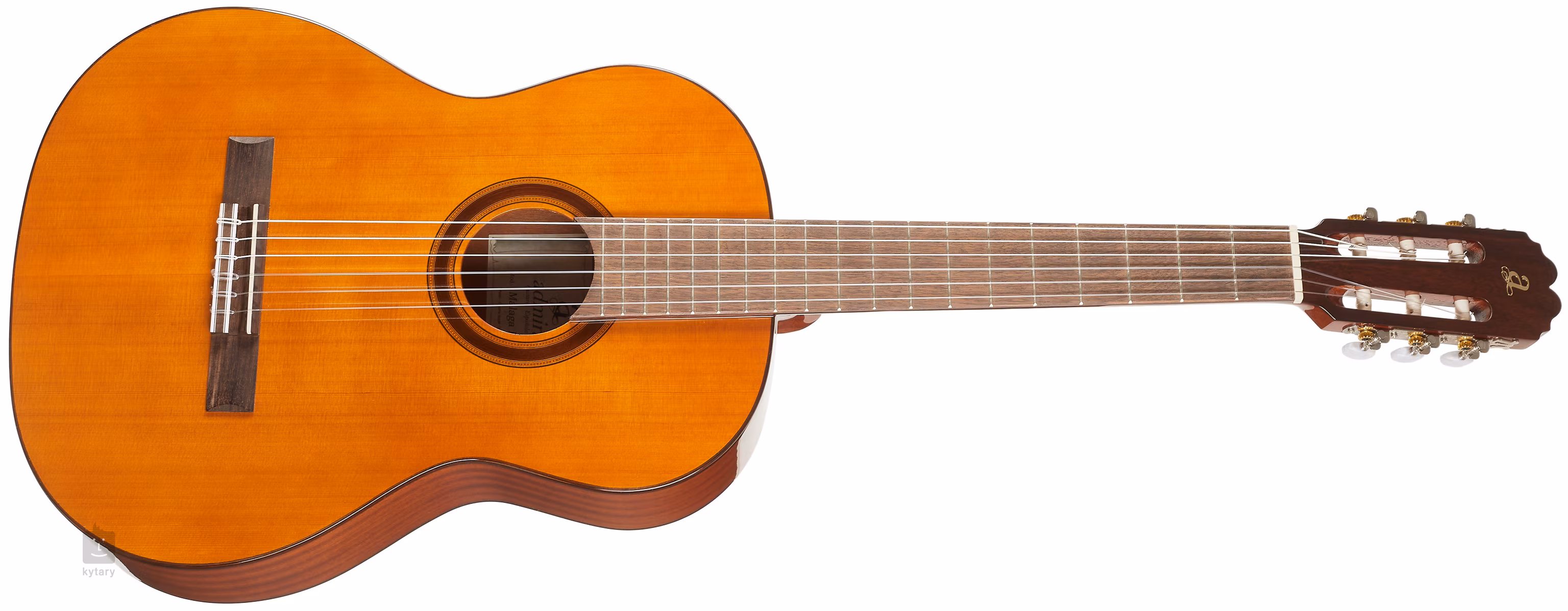 Az Admira Málaga (ADM0540EF) egy megfizethető árú klasszikus elektroakusztikus gitár, amely a kezdőknek és a tapasztaltabb játékosoknak egyaránt örömet okoz. Félig tömör cédrus előlappal és laminált sapele háttal és oldalakkal rendelkezik. A testet fényes lakkozással borítják. Az afrikai mahagóni nyakhoz ragasztott fogólap kabukalli fából készült. A húrok klasszikus nikkel hangolókészülékbe és kabukalli fogólapba vannak szerelve. A stílusos kivitelezést hagyományos elemek hangsúlyozzák a rozetták, a csövek és a cég logója formájában a fejlécen.