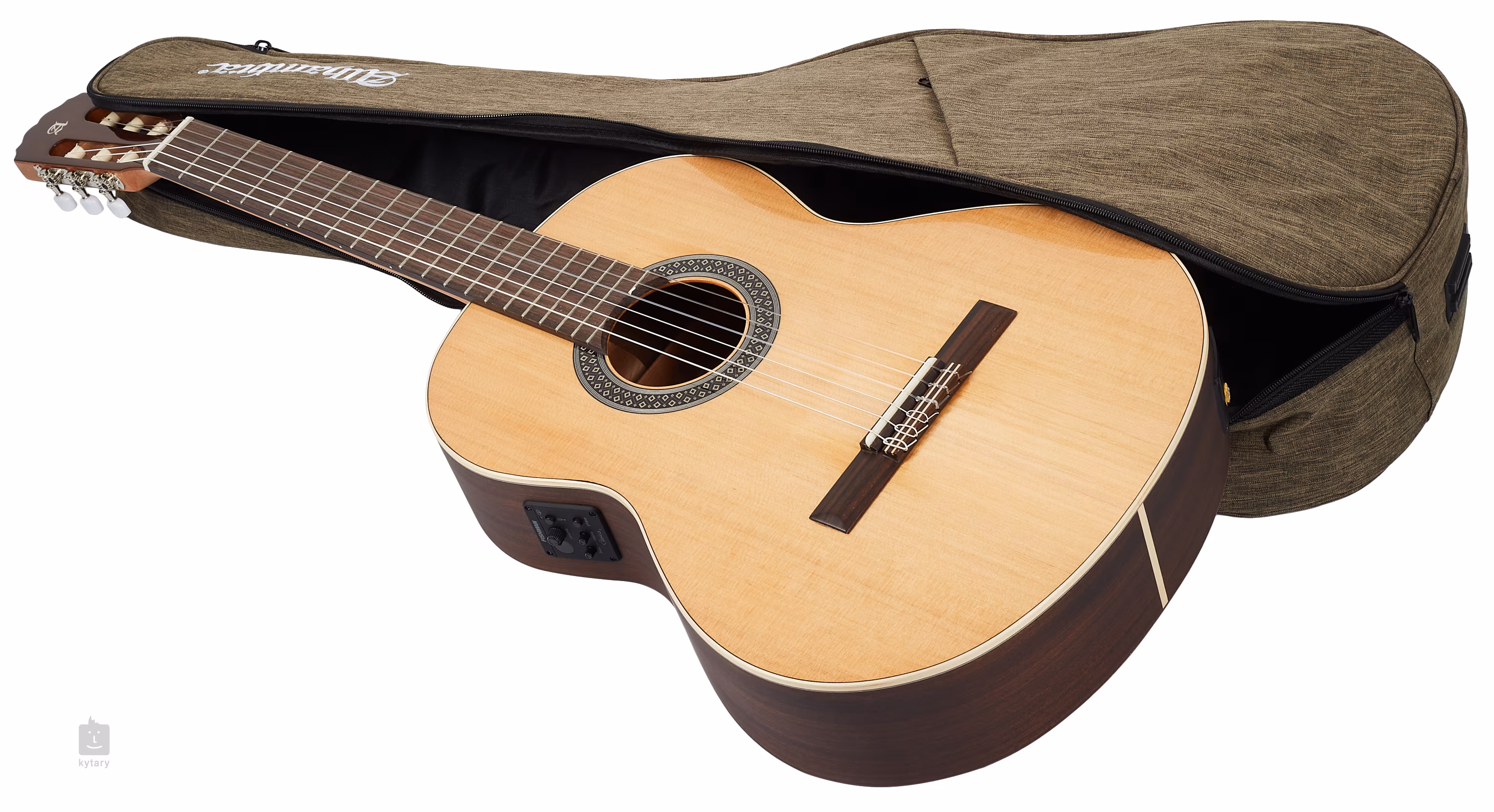 Az Alhambra 1 C HT (Hybrid Terra) klasszikus gitárok olyan hangszerek, amelyek alkalmasak kezdő és haladó klasszikus gitárosok számára egyaránt, és amelyek vitathatatlan hangminőségük mellett alacsonyabb súlyukkal és lenyűgöző kivitelükkel – a fényes lakk és az Open Pore felületkezelés kombinációjával – is örömet okoznak. Mint minden Alhambra modell, ezek a gitárok is kézzel készülnek Spanyolországban. Az Alhambra 1 C HT EZ 4/4 méretű modell elülső lapja tömör vörös cédrusból, hátsó lapja és oldala rétegelt mahagóniból készül. A mahagóni ergonómikusan kialakított nyakhoz paliszander fogólap van ragasztva, pakfong/alpaka fogólapokkal. A húrok a szintetikus anyagból készült nullás és nyeregfogólapon keresztül nikkelbevonatú hangolókulcsokba és paliszander húrtartóba vannak rögzítve. A szép kivitelezést hangsúlyozza a testet körülvevő juharfa szegély és a gitár fején található céglogó. A hangosításról a Fishman Clasica II elektronika gondoskodik, két sávos ekvalizerrel és beépített hangolóval. A gitár tokban (gig bag) kerül forgalomba. A spanyol Alhambra cég 1965 óta foglalkozik akusztikus gitárok gyártásával, amikor is elkészült az első prototípus. Ez olyan sikert aratott, hogy a kis cég hamarosan jelentősen növekedett, és a nagy vásárlói érdeklődésnek köszönhetően megkezdte a gitárok tömeggyártását. Az Alhambra cég a mai napig hagyományos gitárkészítési eljárásokat alkalmaz, amelyeket modern technológiákkal ötvöz. A fát gondosan választják ki, és a feldolgozás után minden gitár alapos hangellenőrzésen esik át. Ha a spanyol gitár klasszikus hangzását keresi, akkor ez a cég termékei biztosan elnyerik tetszését kiváló hangzásukkal és tökéletes kivitelezésükkel.