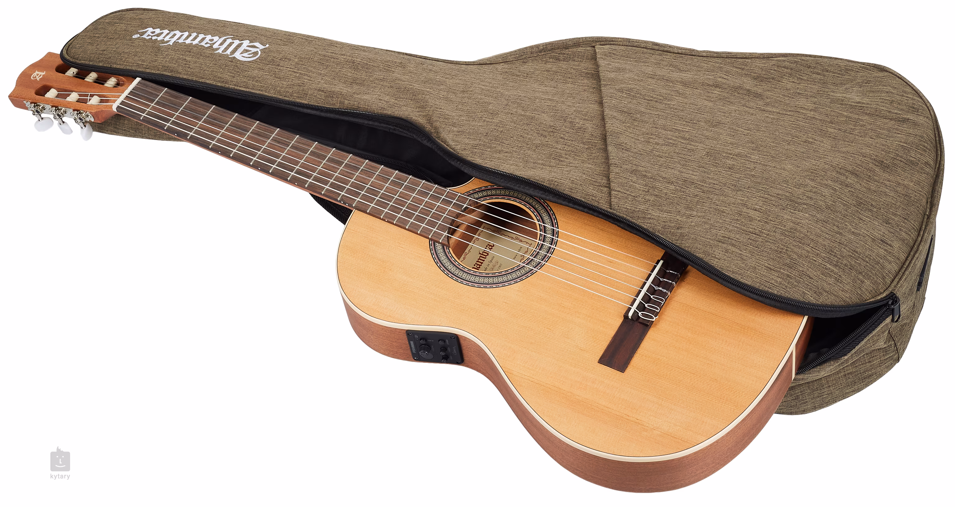 A hangzás erősítéséről egy Fishman Clásica II előerősítő gondoskodik, kétsávos equalizerrel és beépített hangolóval. A gitár egy koncert-táskában érkezik.