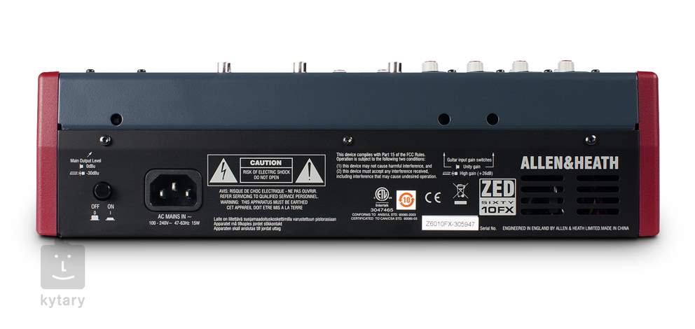 10 csatornás keverőpult • 4 mikrofon-/vonalbemenet, 2 magas impedanciájú FET osztály • 60 mm-es professzionális minőségű faderek • konfigurálható USB sztereo audio bemenet/kimenet • 2 sztereo bemenet • különálló 2-sávos felvételi kimenetek • 16 belső effekt • XLR fő sztereo kimenetek betétekkel • komplex monitorozás • 48 V fantom mikrofon tápellátás • DI szint kapcsolás Gain Boost-tal • Neutrik XLR és 1/4” jack csatlakozók • Méretek: 346x336x95 (mm) • Súly: 3,8 kg