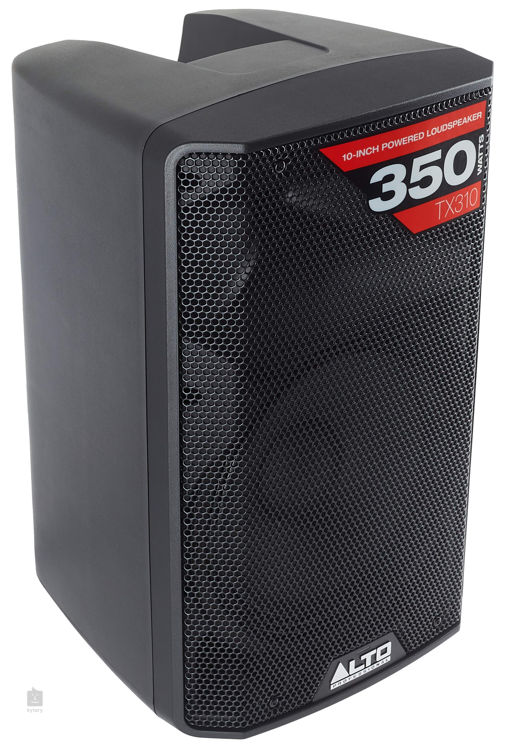 Alto TX310 A robusztus kialakítású készülék belsejében egy 10"-os mélysugárzót és egy 1"-os, titándiagrammal ellátott magassugárzót talál, amelyek egy D-osztályú erősítővel együtt akár 350 W maximális teljesítményt is biztosítanak. A bi-amp precíziós aktív keresztváltóval és kiegyenlítővel is rendelkezik. A TX310 jobb magas frekvenciás teljesítményt nyújt, és rendkívül pontos, 90 x 60 fokos sugárzási mintázatot produkál, amely ideális az optimális közönséglefedettséghez. A hátlapon XLR bemenet és kimenet található, amelyet egy hangerő-potenciométer egészít ki. Az ergonomikusan kialakított markolat kényelmes szállítást biztosít, maga a hangszóró pedig hangszóróállványra helyezhető, vagy a ferde alakot használhatja hallgatáshoz.