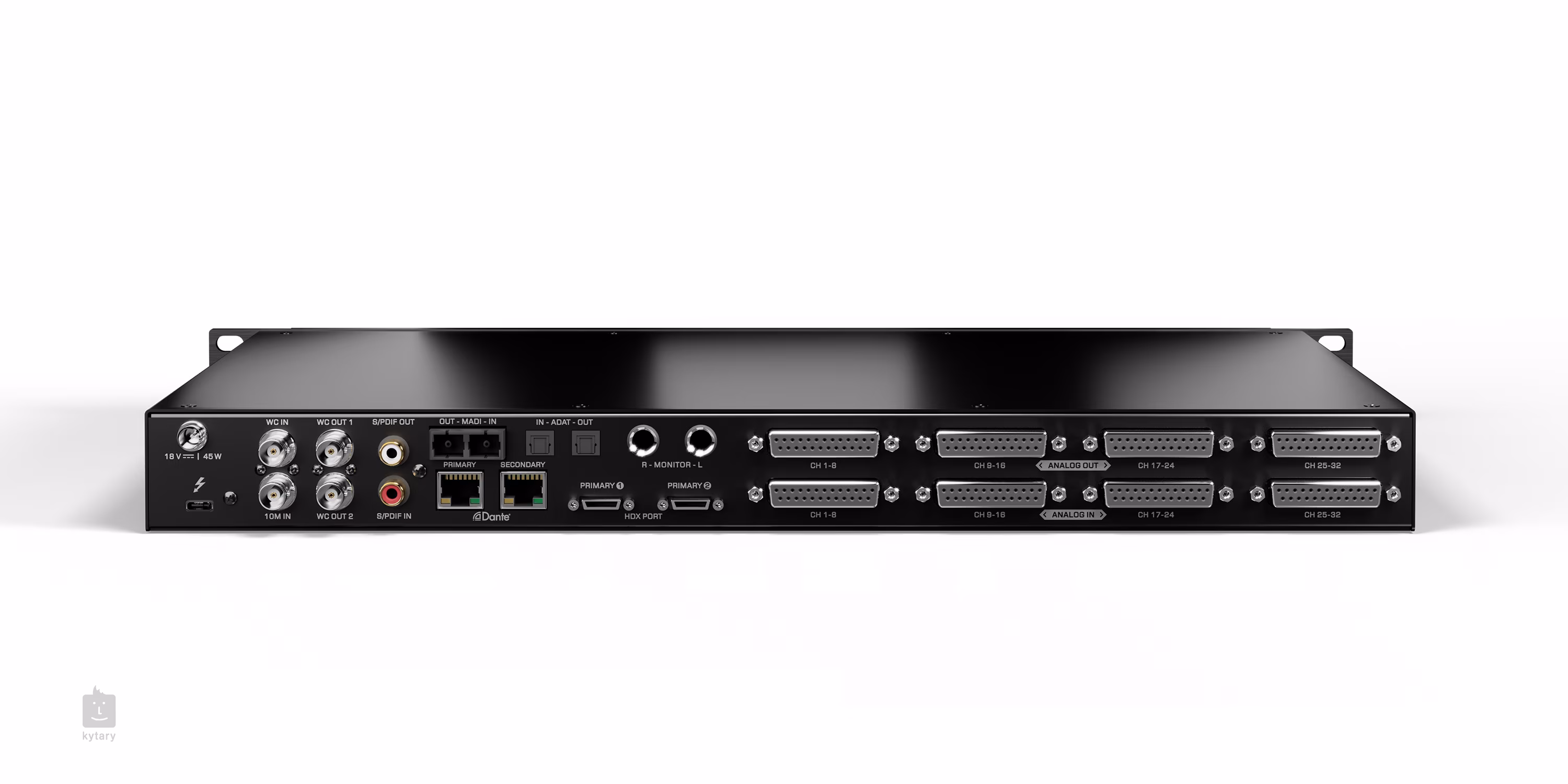 A nagyszerű hangminőség és az intuitív vezérlés mellett a Galaxy 32 Synergy Core tartalmaz egy AD/DA átalakítót is, amelynek dinamikatartománya akár 124 dB is lehet, így a régi analóg fájlokat modern digitális formátumba konvertálhatja, ahol különböző szűrőkkel és plug-inekkel megtisztíthatja őket a zavaró zajoktól, és visszaalakíthatja őket az eredeti analóg formátumba, hogy a felvétel ne veszítse el eredeti patináját és hangulatát. Az előlapon két, a bemeneti jelértékeket mutató, áttekinthető kijelző és egy intuitív vezérlőpanel található a hangkártya egyszerű beállításához. A hátsó panel ezután még tovább bővíti a Galaxy 32 rugalmas csatlakoztathatóságát: sztereó kimenet a stúdiómonitorokhoz, nyolc analóg DB25 be-/kimeneti csatlakozó 32 csatornához, két RJ45-ös csatlakozó az elsődleges és másodlagos Dante-csatlakozáshoz, két HDX port, egy Thunderbolt 3 port, két MADI port, 2x S/PDIF csatlakozó, ADAT vagy két WC be- és két WC kimeneti csatlakozó.
