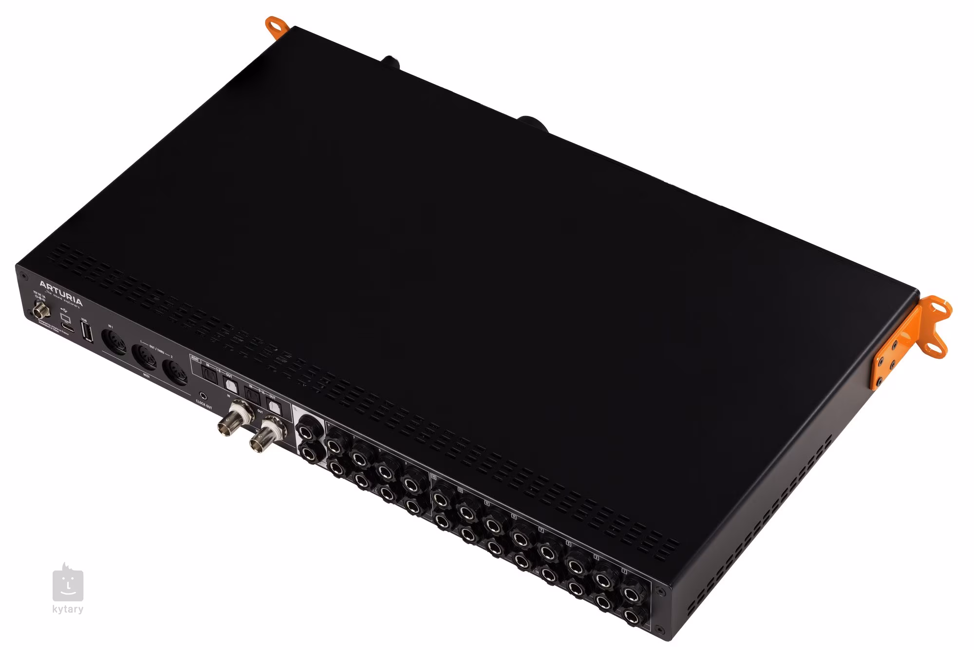 2x Jack 6.3 mm (monitors), 10x Jack 6.3 mm (line), 2x ADAT optical Toslink, Jack 6.3 a 3.5 mm (phones), 1x Jack 3.5 mm (clock), MIDI 5-pin DIN, WC BNC, USB-C