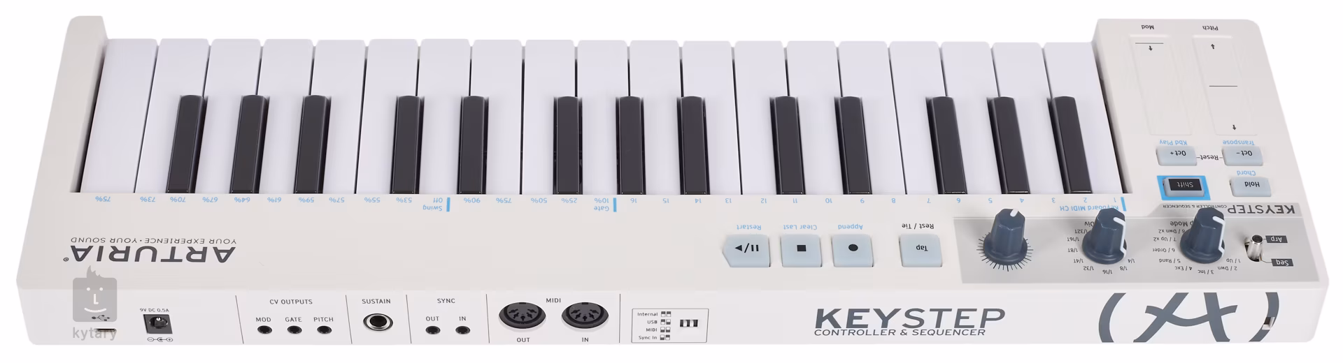 Ami a Keystepet egyedülálló kontrollerré teszi, az a kiterjesztett csatlakoztathatóság. A szabványos USB mellett MIDI bemenetet és kimenetet, órajel szinkronizáló aljzatokat, DIN szinkronizáló aljzatokat, CV/Gate kimeneteket és egy külön CV kimenetet talál, amely hozzárendelhető egy Mod vezérlőhöz, billentyűzet dinamikához vagy aftertouchhoz. A gyakorlatban ez azt jelenti, hogy a Keystep segítségével nemcsak szoftvereket, hanem analóg szintetizátorok és modulok egész gyűjteményét, szinkron MIDI eszközöket stb. is vezérelhet. Az USB port táplálja a kontrollert, ha számítógéphez csatlakoztatjuk, ha külön szeretnénk használni, csatlakoztathatunk egy adaptert.