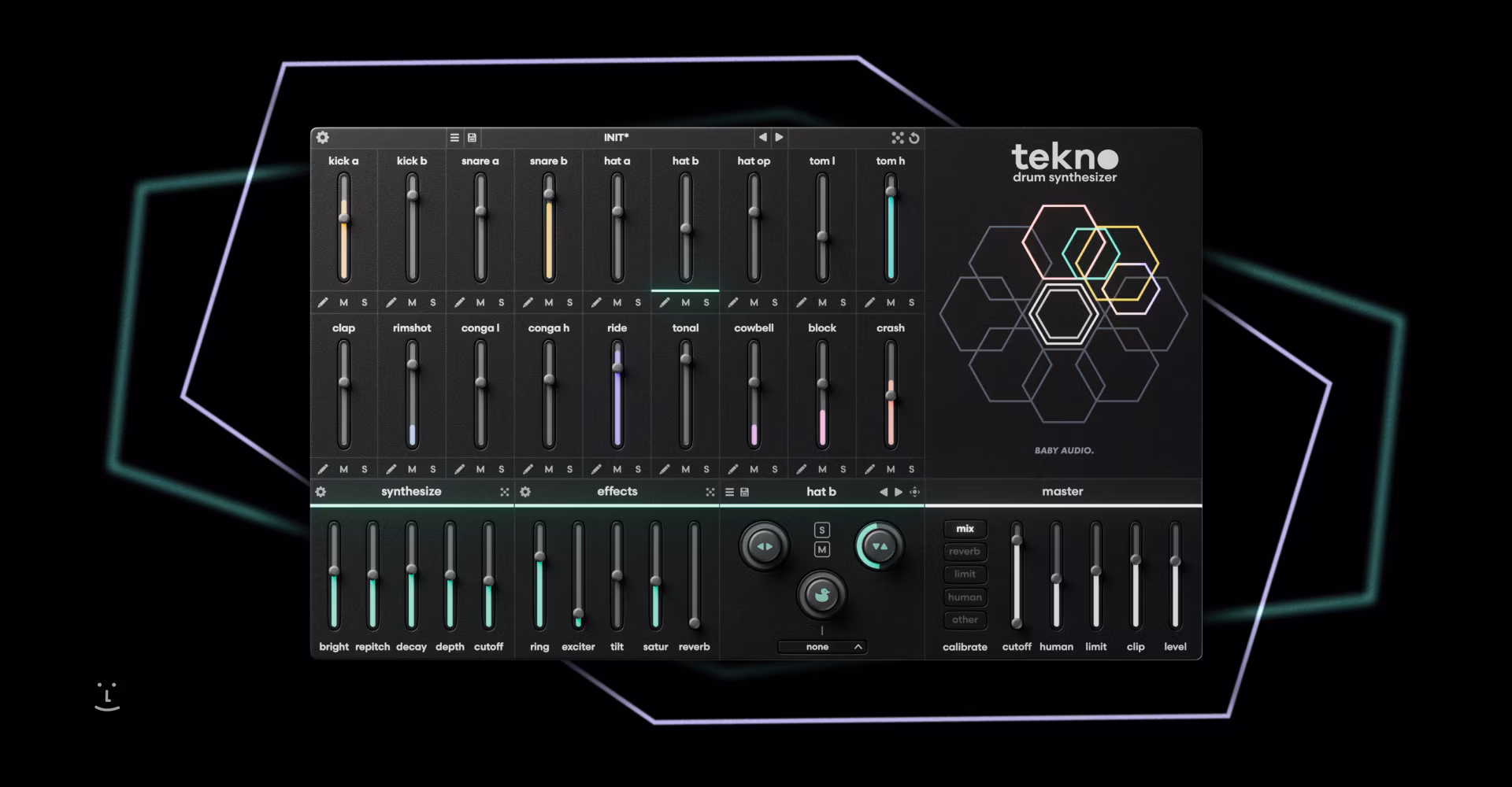 A Baby Audio Tekno ideális eszköz techno, house, trap és kísérleti elektronikus zene producerei számára, akik modern, kemény és dinamikus dobokat szeretnének létrehozni a minták korlátai nélkül – az alapvető lábdobtól a komplex, soha nem ismétlődő ritmikus struktúrákig.