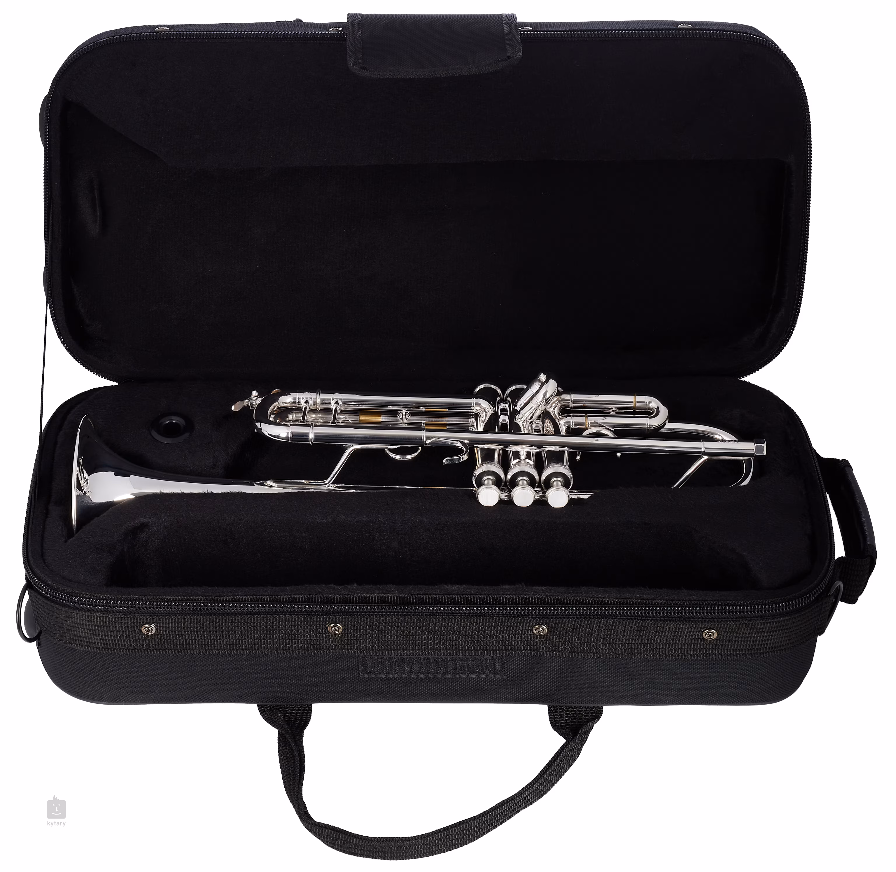 Ez a Bb trombita ideális hangszer kezdő zenészek és tanulók számára. Sárgaréz hangfal, arany sárgaréz szájrész, rozsdamentes acél dugattyúk, hüvelykujjtámasz az első bundon, gyűrű a harmadik bundon, két vízszelep és ezüstözött felület. A hangfal gravírozással díszített. A 7C szájrész és a vállpántos puha tok tartozék.