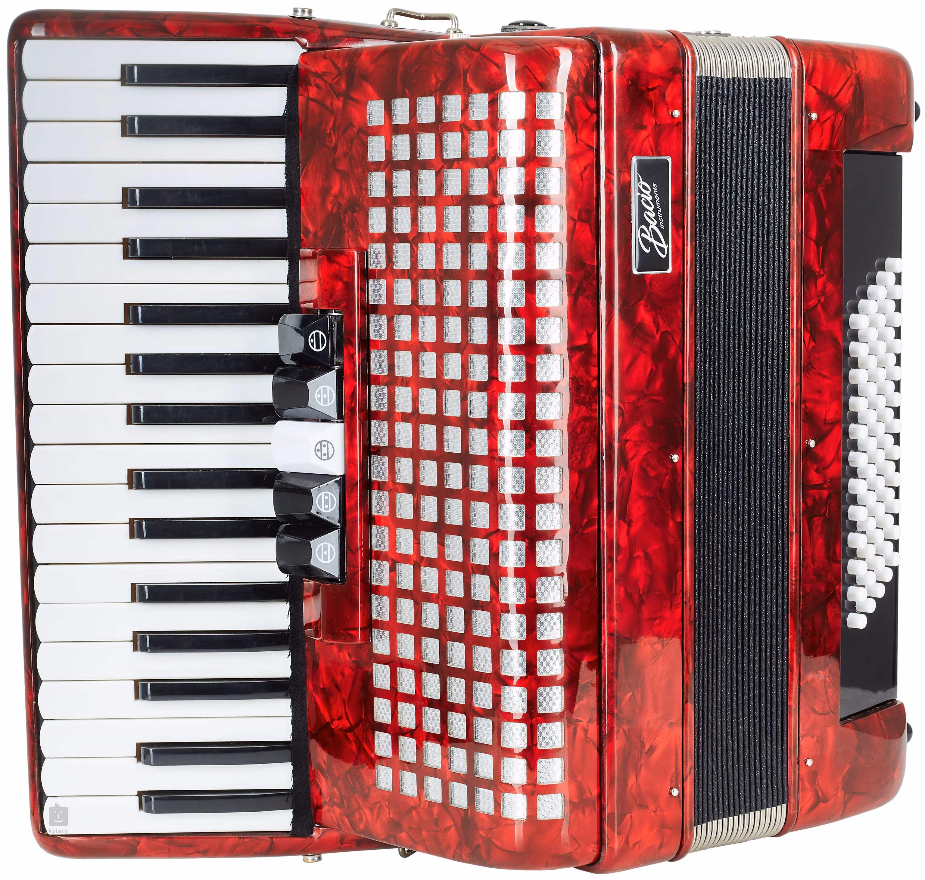 A Bacio márka megfizethető hangszereket kínál, amelyek teljesen kezdők számára is alkalmasak. Az AT3460 billentyűs harmonika alumínium tokban kerül forgalomba.