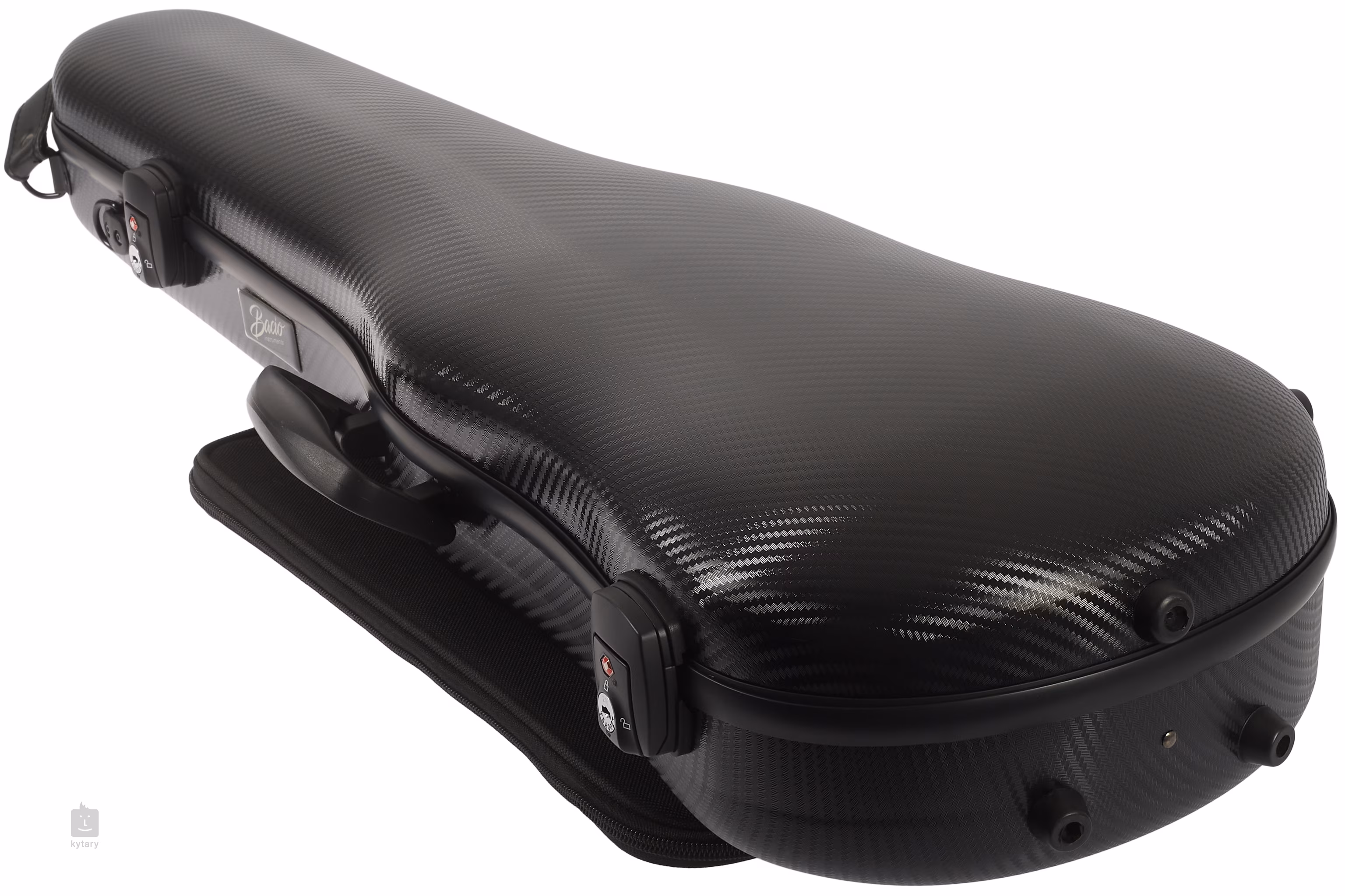 Karbon kompozit hegedűtáska két zárral és kód/jelszó feloldással, kivehető kottatartóval, fogantyúkkal az oldalán és a tetején, két vállpánttal és két vonótartóval.