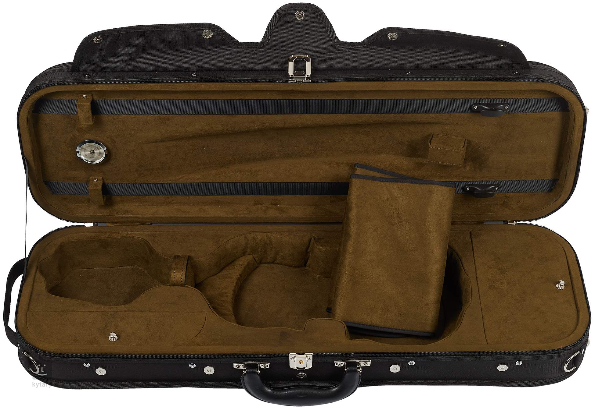 Ez a stílusos hegedűtáska számos praktikus funkciót kínál, de különösen igazán megbízható védelmet nyújt hangszerének. A középpontjában egy kellemesen könnyű habszivacs anyagból készült vastag párnázat áll, amely megvédi hangszerét az ütésektől és a rázkódásoktól. A külső réteg tartós oxfordi szövetből készült, amely megvédi a tokot a szennyeződésektől és a rossz időjárástól, míg a tok belső része plüssel van bélelve, amelynek köszönhetően még a hangszer fényezésének biztonsága miatt sem kell aggódnia. Természetesen a minőségi hardver biztosítja a tok hosszú élettartamát. Örülni fog a két húrtartónak, a póthúrok tárolására szolgáló csőnek, a higrométernek, a belső tárolórekesznek és a tartozékok tárolására szolgáló tágas külső zsebnek, valamint a kényelmes fogantyúknak.