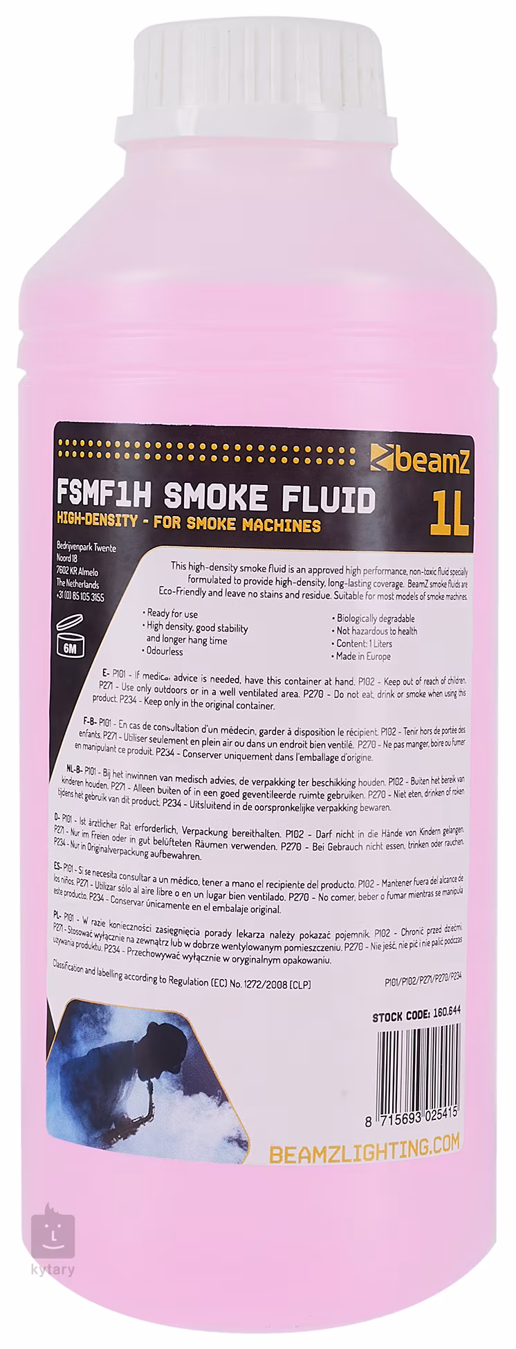 A BeamZ kiváló minőségű FSMF1H ködképző patronja nem mérgező, biológiailag könnyen lebomló folyadék, amely ártalmatlan az egészségre és a környezetre. Alkalmas minden szabványos ködképzőhöz, és nehéz, hosszan tartó, nagy sűrűségű ködöt termel, amely kiválóan alkalmas lézershow-khoz, klubokban vagy privát otthoni partikhoz. Vízbázisú kivitel.
