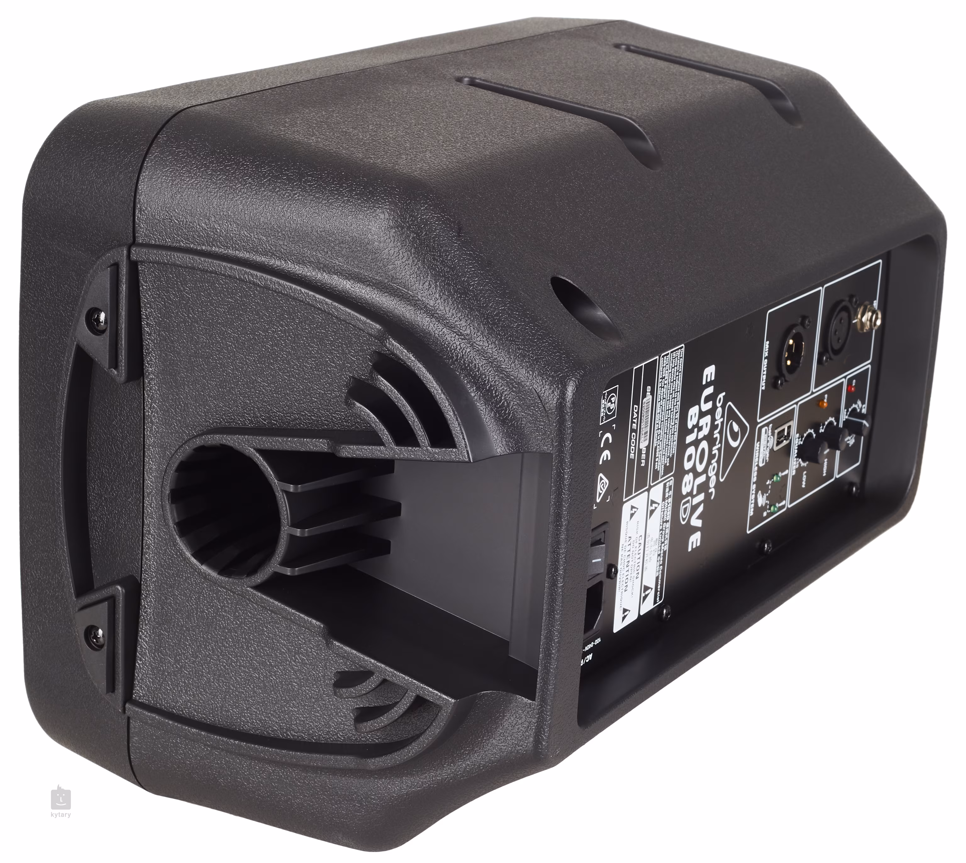 A B108D robusztus kialakítású készülék belsejében 8"-os mélysugárzók és 1"-os magas hangszórók találhatók, amelyek egy D-osztályú kéterősítővel együtt akár 300 W maximális teljesítményt biztosítanak. A főpanelen kétsávos equalizer, hangerőszabályzó és bemenet található a Behringer vezeték nélküli rendszerekhez. Vannak XLR és line bemenetek mikrofonhoz vagy hangszerhez, valamint XLR kimenet egy másik PA rendszerhez való csatlakozáshoz. A hangszórót a padlóra helyezheti vagy hangszóróállványra szerelheti.