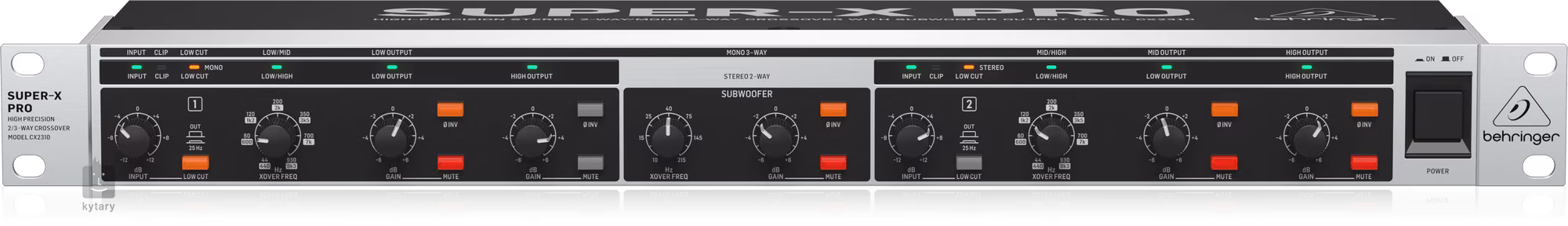 A Behringer CX2310 egy nagy pontosságú crossover, amelyet professzionális hangrendszerekben való használatra terveztek. Sztereó 2 sávos vagy mono 3 sávos üzemmódot kínál, és egy külön mélynyomó kimenetet ad hozzá független osztott frekvenciavezérléssel. Fejlett Linkwitz-Riley szűrőkkel és 24 dB/oktáv csillapítással rendelkezik, így tökéletesen lapos frekvencia válasz és nulla fáziseltolódás garantált az osztott frekvencia tartományban.