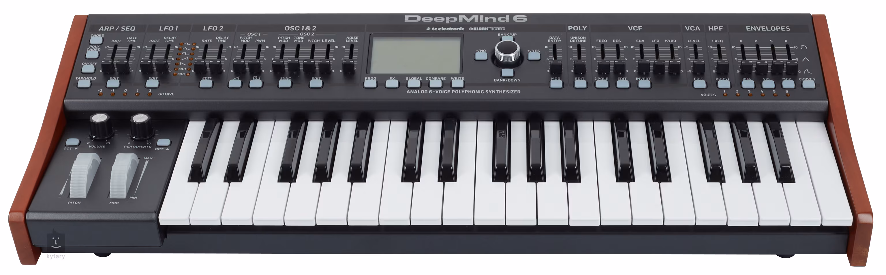 A DeepMind 6 egy olyan eszköz, amely stúdióban és élő fellépéseken egyaránt jól használható, és teljesen új szintre emeli a teljesítményét. A széles effekt- és szűrőválasztéknak köszönhetően kimeríthetetlen forrása lesz zenei álmainak és ötleteinek. A kezelőpanelje is örömöt fog okozni Önnek. Minden funkció áttekinthetően el van rendezve, színekkel megkülönböztetett szakaszokba, ahol az összes paramétert érzékeny faderekkel és háttérvilágítású gombokkal állíthatja be. A beállított hanghullámot aztán gyönyörűen grafikusan ábrázolva láthatja a panel közepén található nagy LCD-kijelzőn. Természetesen rendelkezésre áll a pitch bend, a modulációs kerék és a kissé kevésbé szabványos Portamento vezérlő is. Akik még nagyobb áttekinthetőségre vágynak, azoknak örömére a szintetizátor külső mobil eszközzel is vezérelhető – a hangszer kompatibilis a Windows, Mac OS, Android és iOS operációs rendszerekkel.