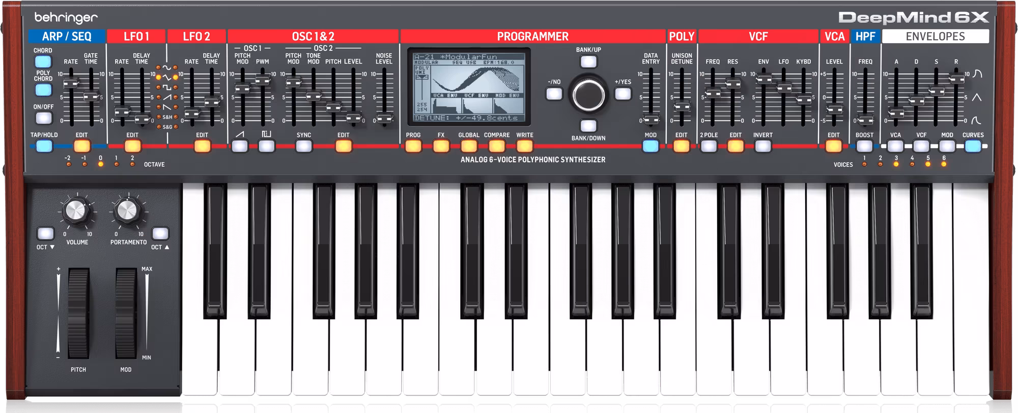 A DeepMind 6X egy egyedülálló analóg szintetizátor hathangú polifóniával és 37 billentyűs, félig súlyozott billentyűzettel. Két oszcillátorral, két LFO-val, három ADSR-generátorral, 32 lépéses szekvencerrel, arpeggiátorral és nyolccsatornás modulációs mátrixszal rendelkezik. Egyszóval minden, ami egy analóg szintetizátorból nem hiányozhat.