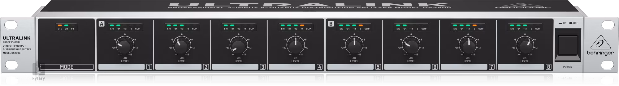 A Behringer DS2800 egy professzionális elosztó elosztó 1U rack egység kialakításban 2 bemeneti és 8 kimeneti csatornára.