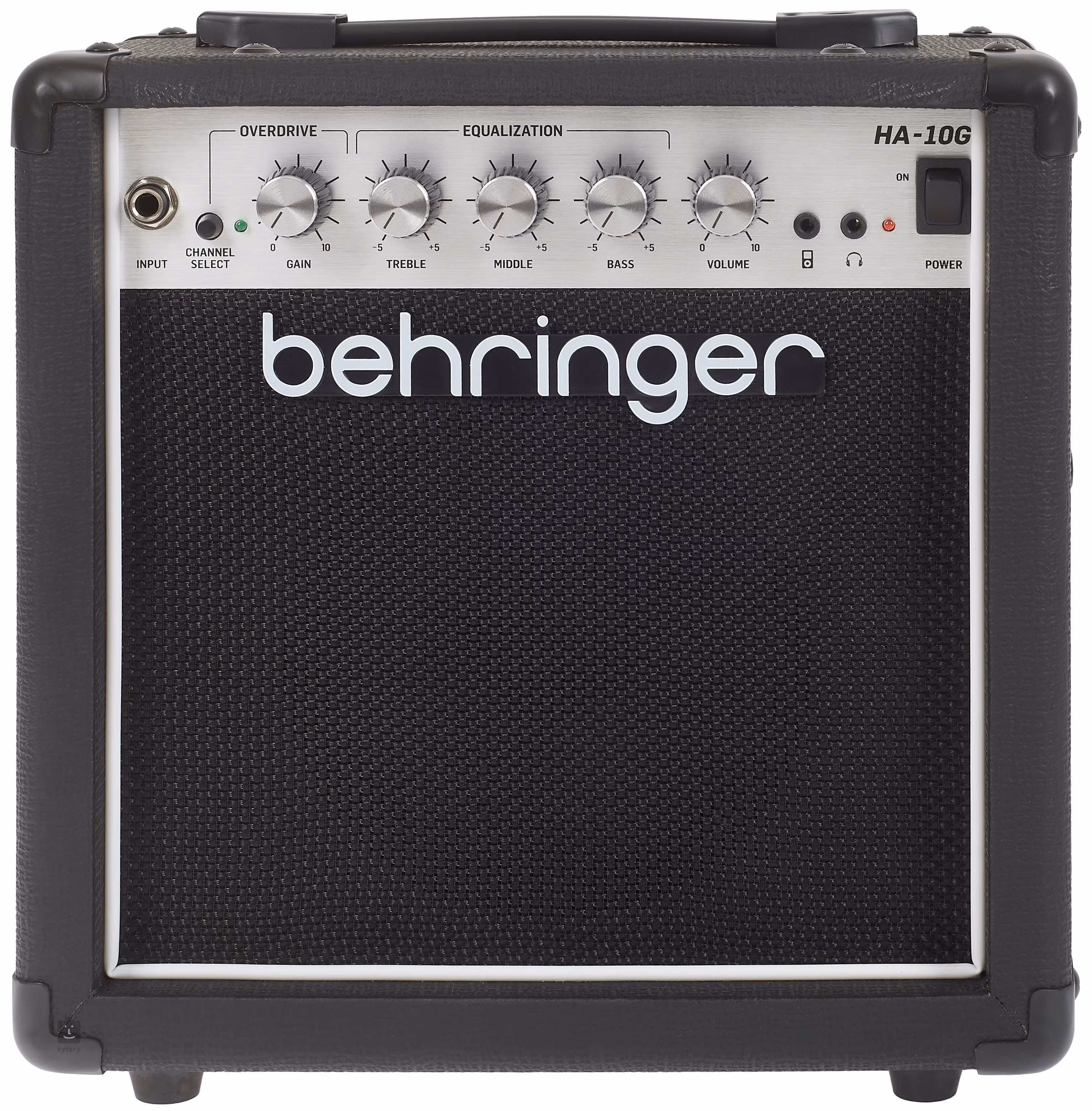 A Behringer HA-10G egy kétcsatornás (clean, overdrive) 10 wattos tranzisztoros gitárkombó, amely jól használható gyakorláshoz, játéktudásod fejlesztéséhez, valamint könnyen hordozható egységként meghittebb rendezvényeken. A két csatornán kívül háromsávos EQ-t kínál a részletesebb hangbeállításokhoz, fejhallgató-kimenetet fülke-szimulációval a zavartalan gyakorláshoz még a késői órákban is (a belső hangszóró elnémul, ha fejhallgatót csatlakoztatunk), valamint Aux In bemenetet az improvizációhoz és a külső eszközökről lejátszott zeneszámokra való gyakorláshoz.