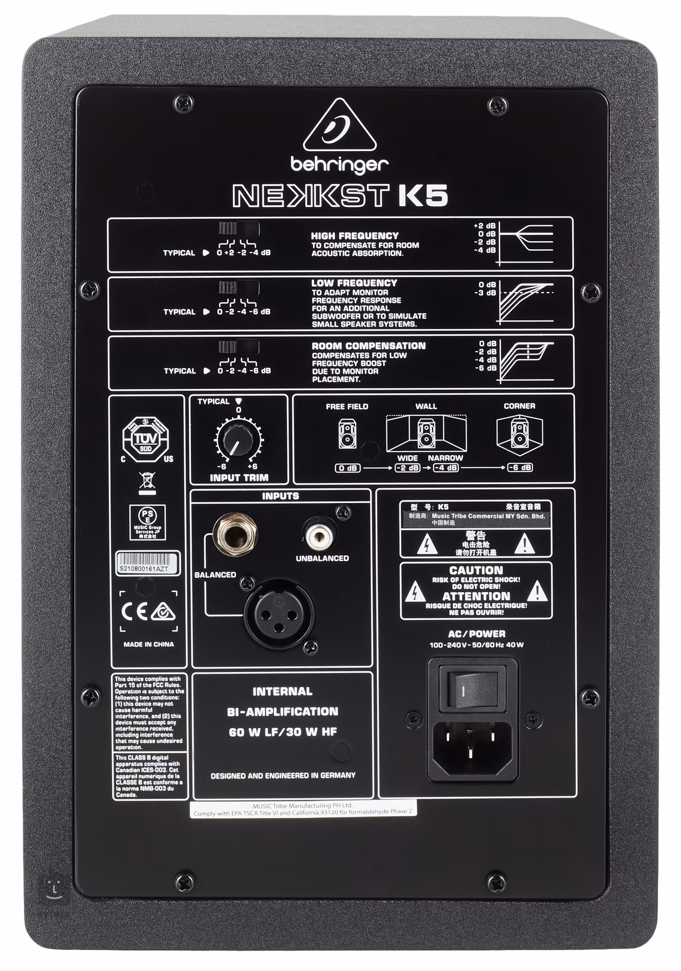 A stúdiómonitorok azon képessége, hogy alkalmazkodni tudjanak az akusztikai feltételek széles skálájához, a jó zenehallgatás egyik legfontosabb jellemzője. Ezért a NEKKST K5 ezen a téren is meglehetősen széles körű alkalmazkodóképességet kínál. A hátlapon található egy dip-kapcsoló a fejlett basszus- és magasságkorrekcióhoz, valamint egy másik dip-kapcsoló a helyiségben való elhelyezés beállításához, ebben az esetben egyértelmű piktogramok állnak a felhasználó rendelkezésére.