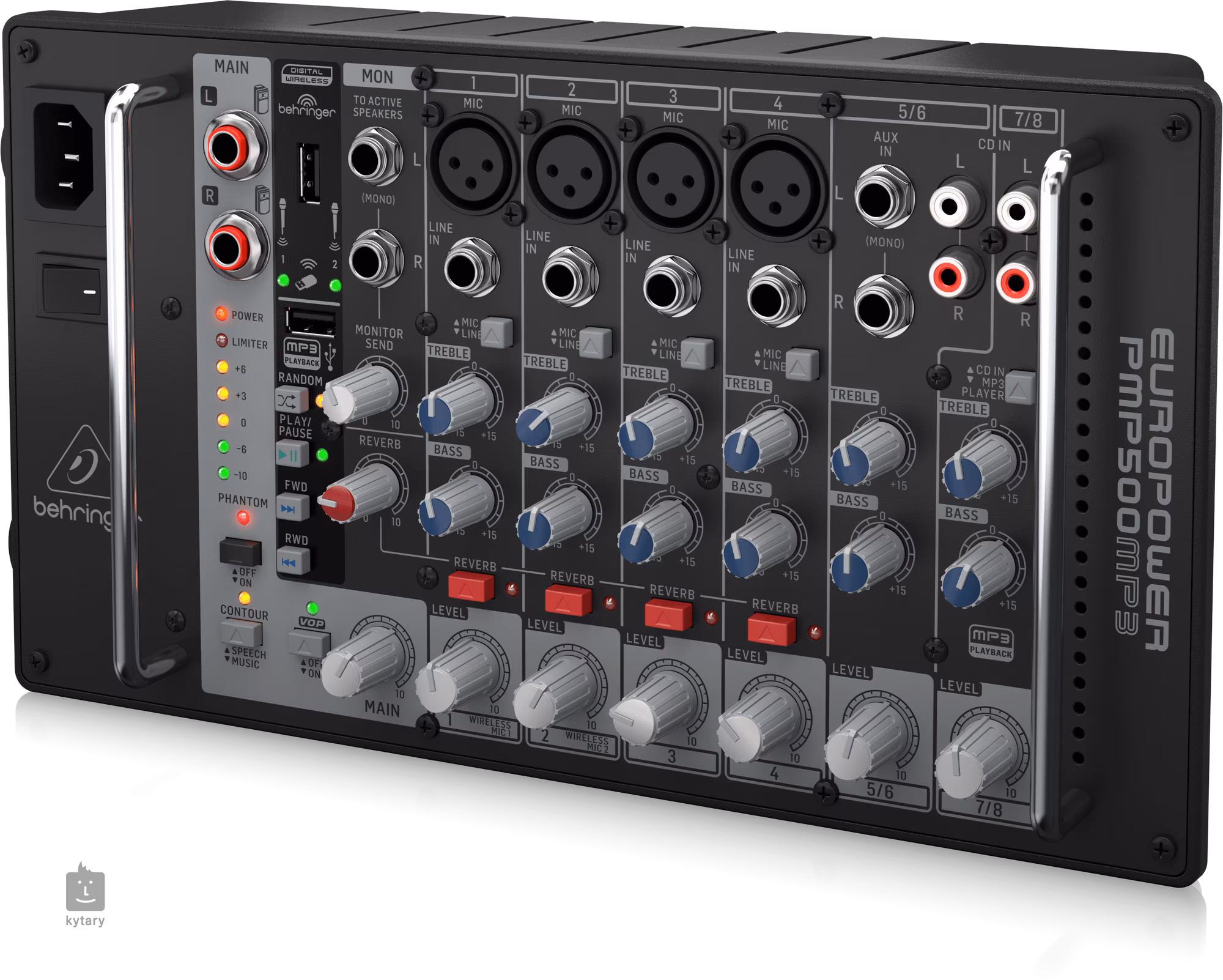 A Behringer PMP500MP3 egy nyolccsatornás keverőpult beépített 500 W-os erősítővel, KLARK TEKNIK multifunkciós processzorral és vezeték nélküli csatlakoztathatósággal.