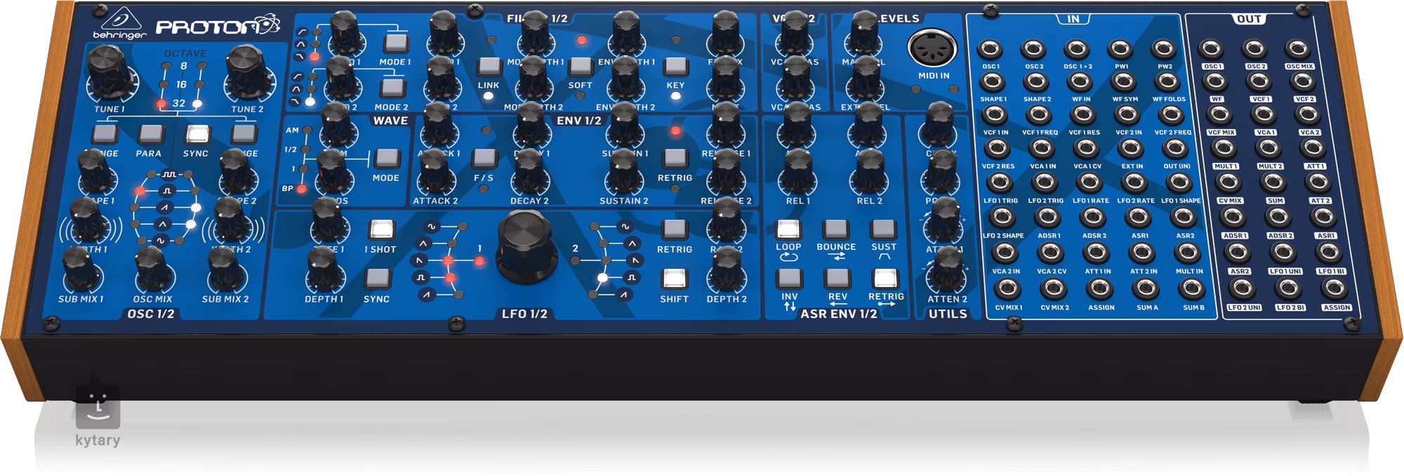 A Behringer Proton egy analóg parafónikus félmoduláris szintetizátor 2 VCO-val, 2 multi-mode VCF-fel és 2 VCA-val, 4 borítékkal és egy Wave Folderrel Eurorack formátumban.