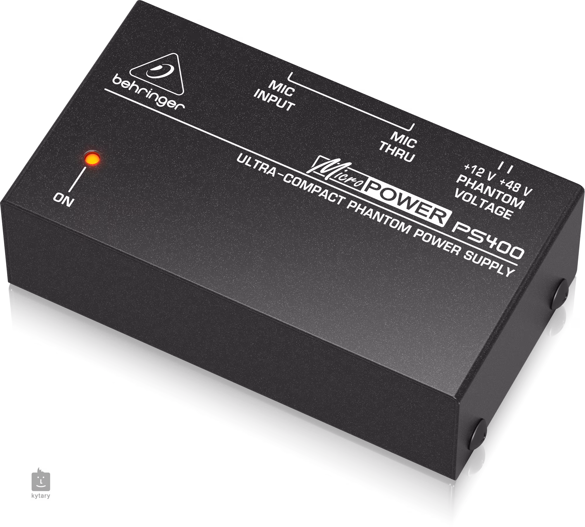 A Behringer PS400 egy külső fantomtápegység kondenzátor mikrofonokhoz. Ez a kompakt méretű doboz saját 12 egyenáramú tápegységgel rendelkezik (tartozék), és 12 vagy 48 V-os tápfeszültséget biztosít. Akkor jön jól, ha a keverő vagy az előerősítő nem biztosítja ezt a tápellátást. Csak csatlakoztasson egy kondenzátor mikrofont a Mic Input XLR-hez (F, női), és küldje tovább a jelet a Mic Thru XLR-ről (M, férfi).
