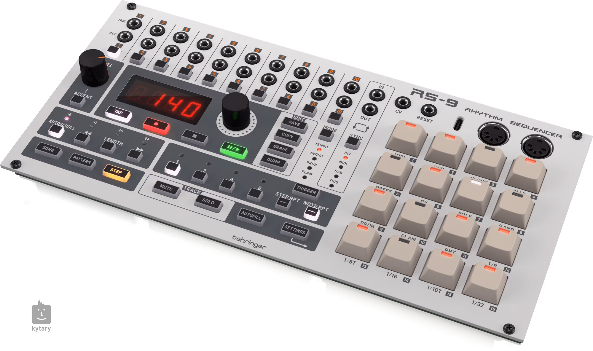 A Behringer RS-9 egy ritmikus 64 lépéses szekvenszer és egy 10 csatornás dobmixer kombinációja.