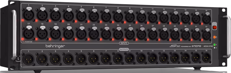 A Behringer S32 egy digitális stagebox, amely összesen 32 csúcsminőségű MIDAS előerősítőt kínál. Ezenkívül 16 kimenet vagy AES50 port áll rendelkezésre a SuperMAC (Klark Teknik) technológiával történő hálózatba kötéshez.