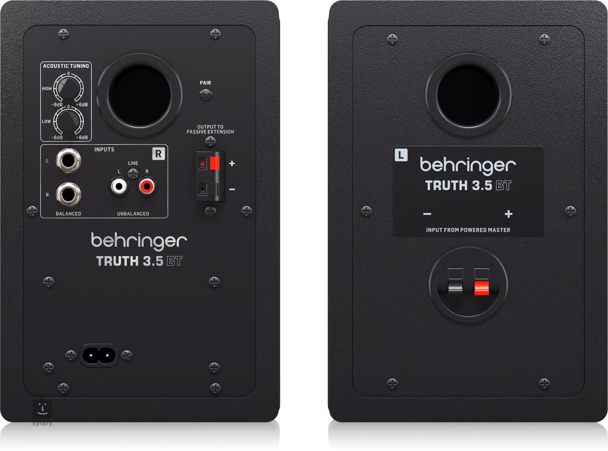 A Behringer TRUTH 3.5 BT egy pár aktív stúdiómonitor Bluetooth technológiával, amely lehetővé teszi a vezeték nélküli csatlakozást számos eszközhöz. A nem Bluetooth-os változataikhoz hasonlóan ezek a monitorok is pontos és átlátható hangzást biztosítanak, ami elengedhetetlen a keveréshez és a produkcióhoz. Mindegyik monitor egy 3,5"-os üvegszálas mélysugárzóval és egy precíziós 1"-os selyemmagassugárzóval van felszerelve. Ez a kombináció 70 Hz - 20 kHz frekvenciatartományt eredményez.