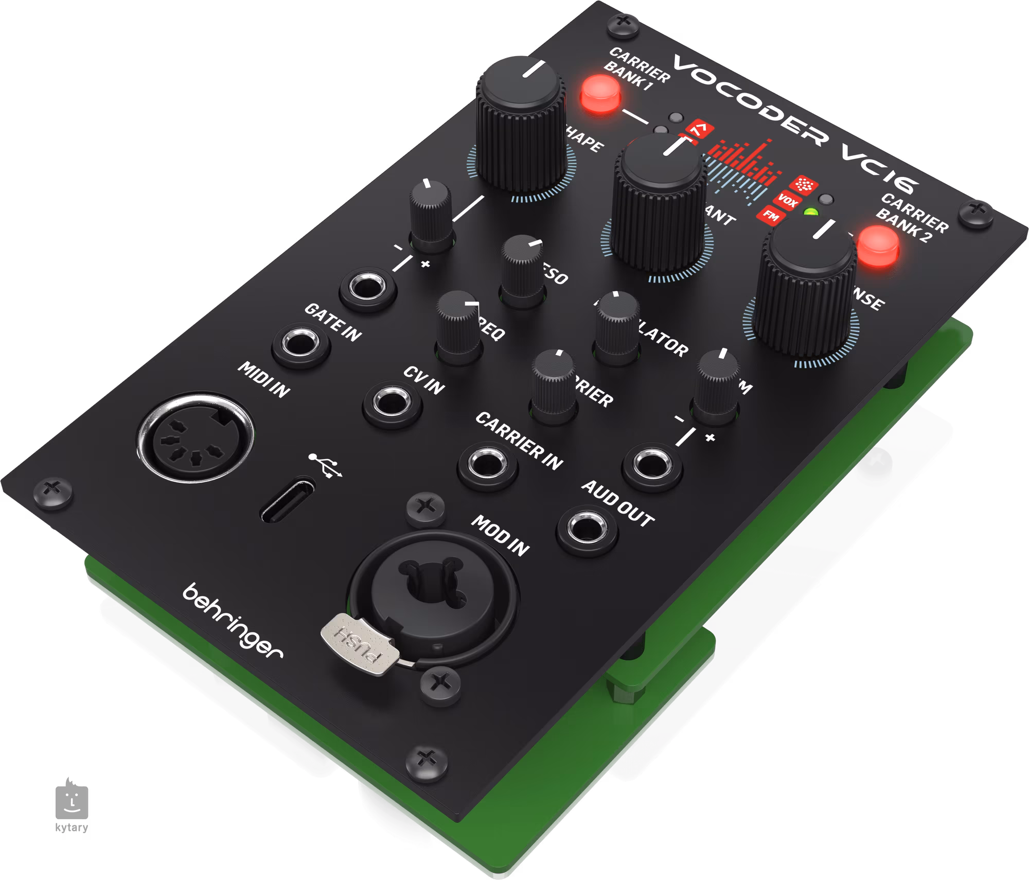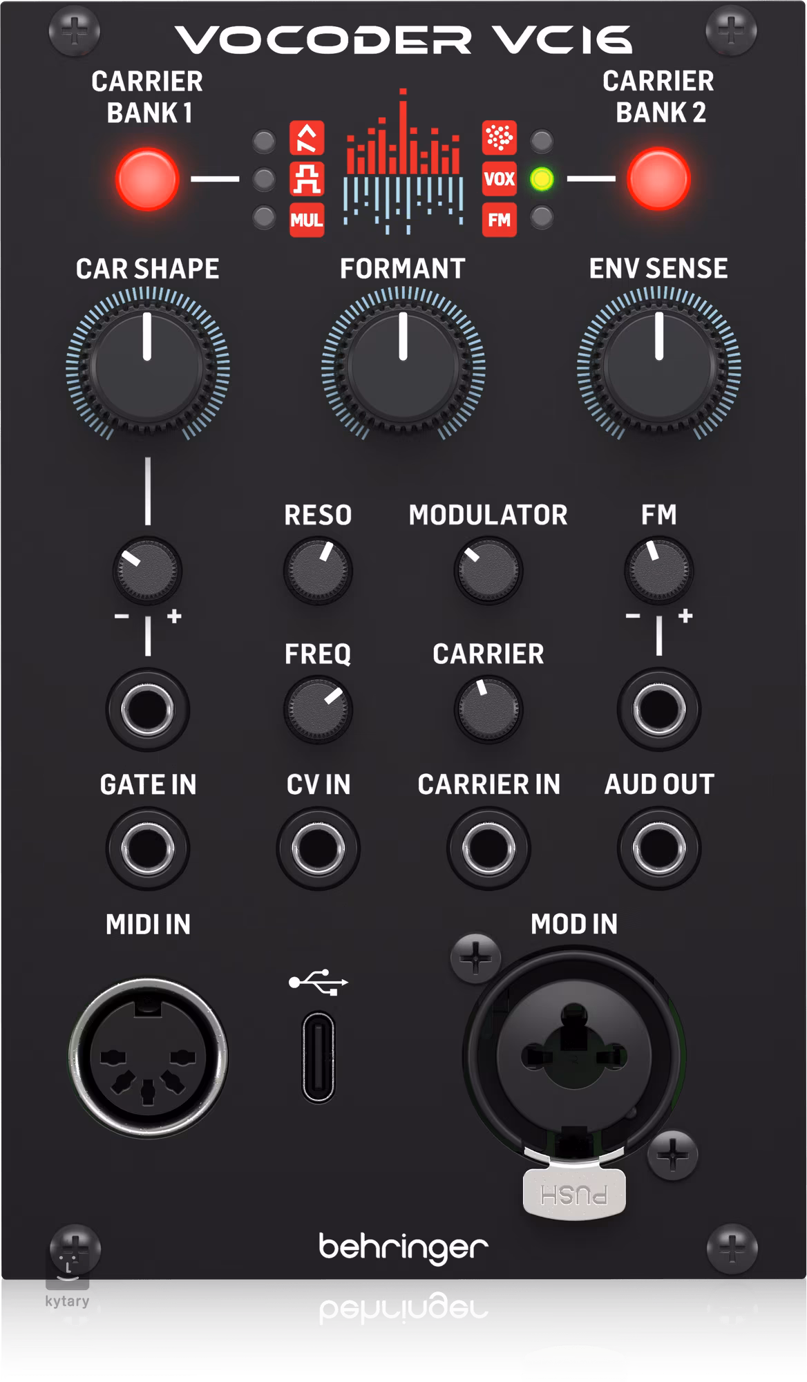 A Carrier Shape vezérlő és annak CV Attenuverter segítségével a jel rendkívüli pontossággal alakítható. Nem hiányoznak a részletes paraméterek, mint a Formant, Envelope Sense, Resonance, Cutoff, Modulator és Carrier, amelyek segítségével teljes ellenőrzést kapsz a végeredmény hangszín felett.