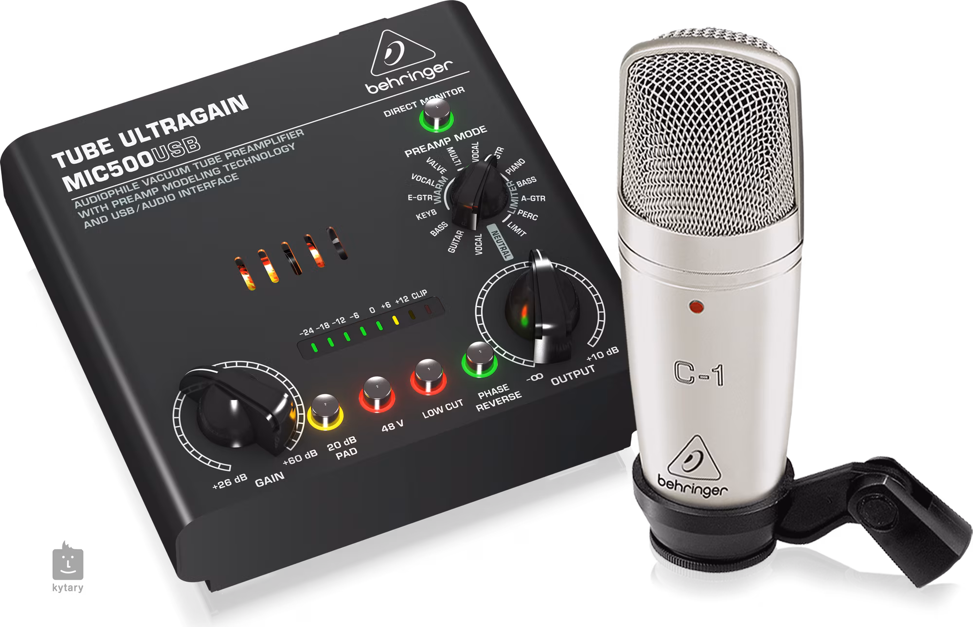 A BEHRINGER VOICE STUDIO tartalmazza a minőségi felvételhez szükséges összes felszerelést. Tartalmazza a Behringer C-1U kondenzátor mikrofont kardioid karakterisztikával, amely tiszta és részletes hangkimenetet biztosít. A mikrofon integrált előerősítővel rendelkezik, opcionális fantomtápellátással, amely professzionális és tiszta hangfelvételt tesz lehetővé. Szintén a készlet része a Behringer MIC500USB mikrofoncsöves előerősítő, amely 12AX7 csővel van felszerelve, fantomtáplálással és USB interfésszel.