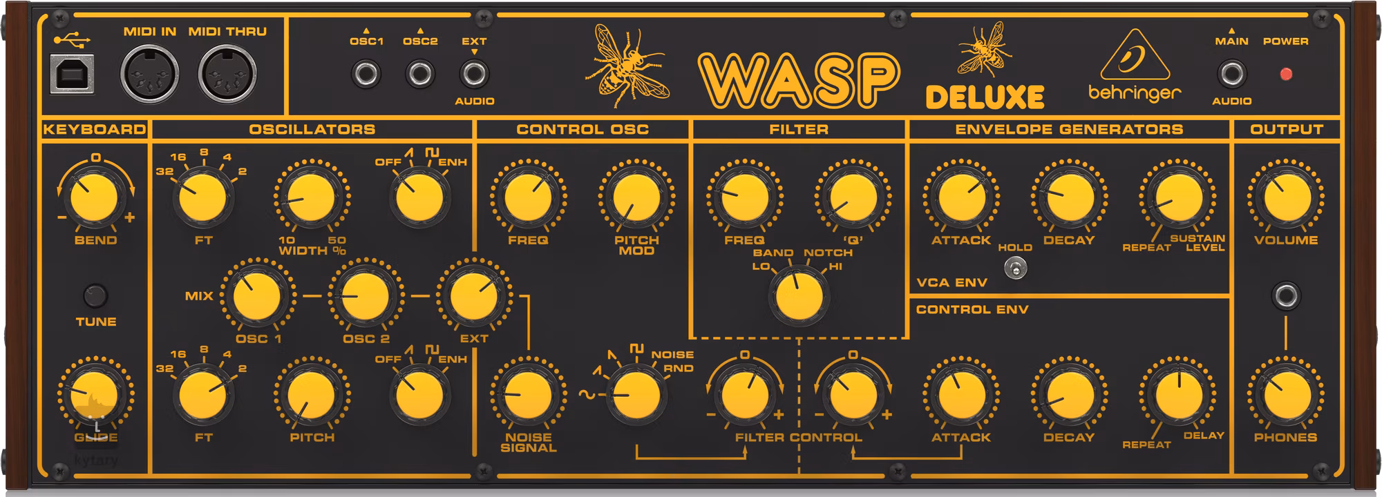 A Behringer arról ismert, hogy klasszikus hangszereket kínál modern és megfizethető kivitelben. A WASP DELUXE modell így hiteles vintage karaktert, széles modulációs lehetőségeket és a moduláris világ rugalmasságát kínálja kompakt és megfizethető csomagban.