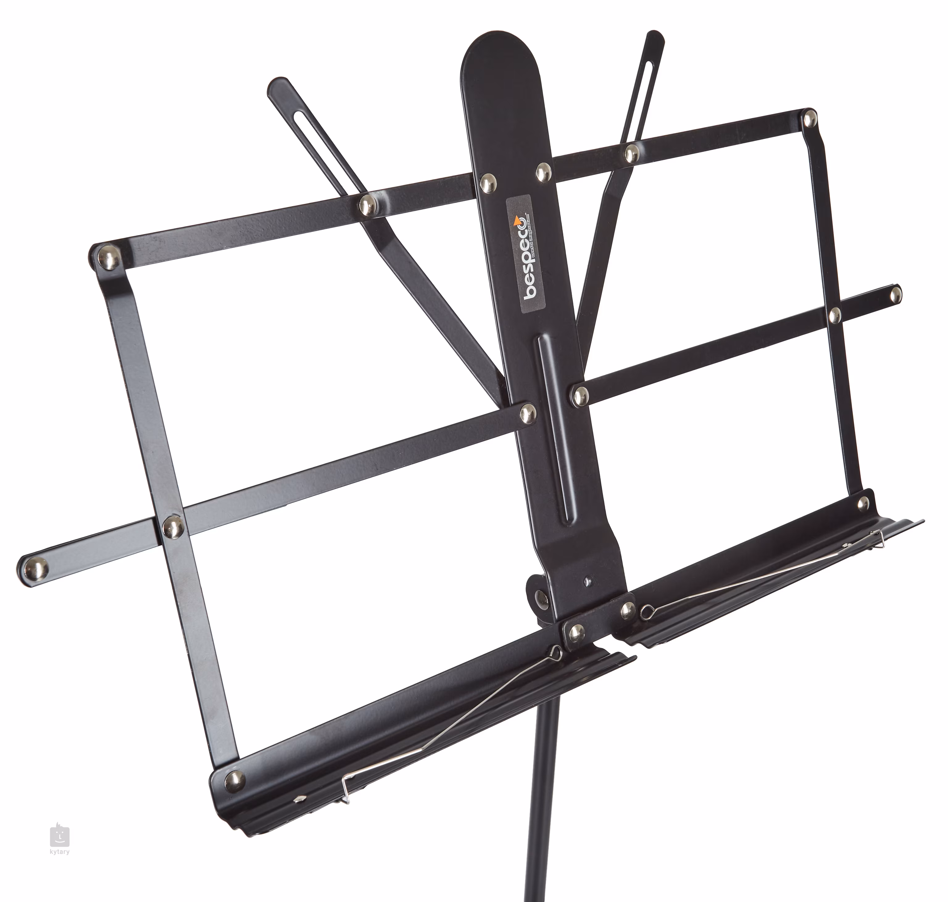 Kiváló minőségű, alumíniumból és acélból készült kottaállvány, puha nejlon borítással. A tábla szöge teljesen állítható és rögzíthető egy ergonomikus tartóval, a magasság három fokozatban állítható. A felületet epoxi-poliészter porral kezelik. Ez az állvány kiváló stabilitást és a szilárdság és a könnyűség kiegyensúlyozott arányát biztosítja. Táblaméret: 500 x 240 mm.