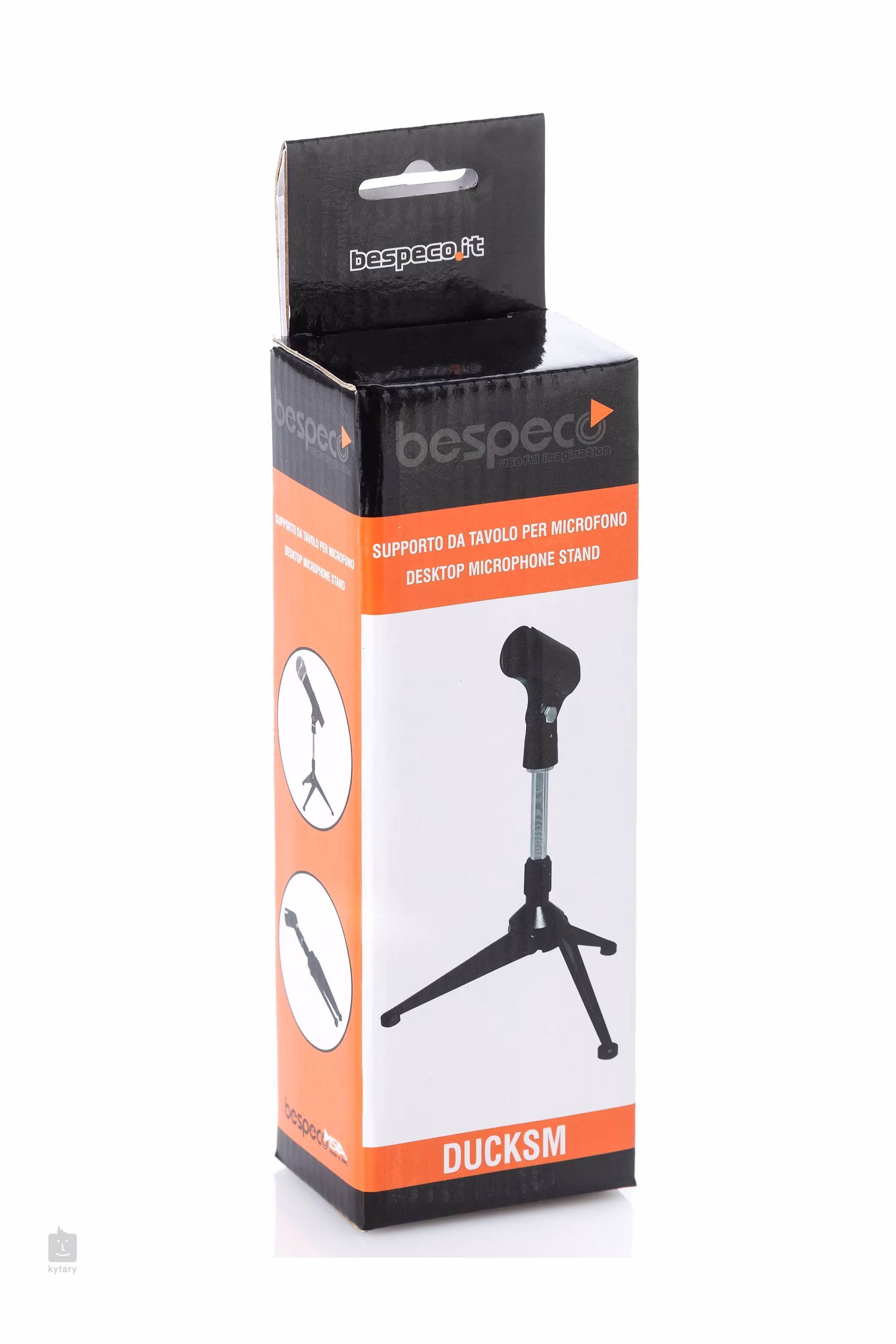 Asztali mikrofonállvány állvánnyal. Úgy tervezték, hogy a lehető legjobban össze lehessen hajtani, hogy minimális helyet foglaljon. Állítható magasságú, és mikrofontartó is tartozik hozzá.