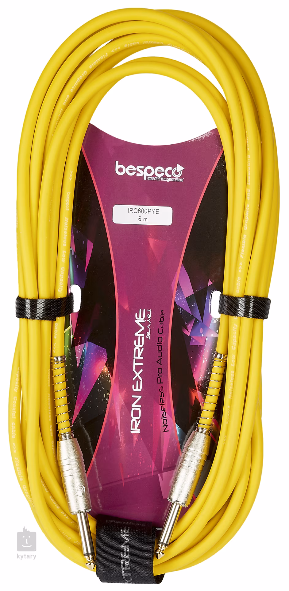 Ez a Bespeco Iron Extreme sorozatú műszerkábel 98%-ban oxigénmentes réz (OFC) vezetőt és belső félvezető PVC köpenyt tartalmaz, amely nem termel zajt. A vezető több mint 92 százalékán spirális árnyékolás vagy a fémtestű, aranyozott csatlakozók szintén hozzájárulnak a hangminőséghez. Természetesen a tartós, mégis rugalmas PVC és vulkanizált szilikon burkolat is jellemző.