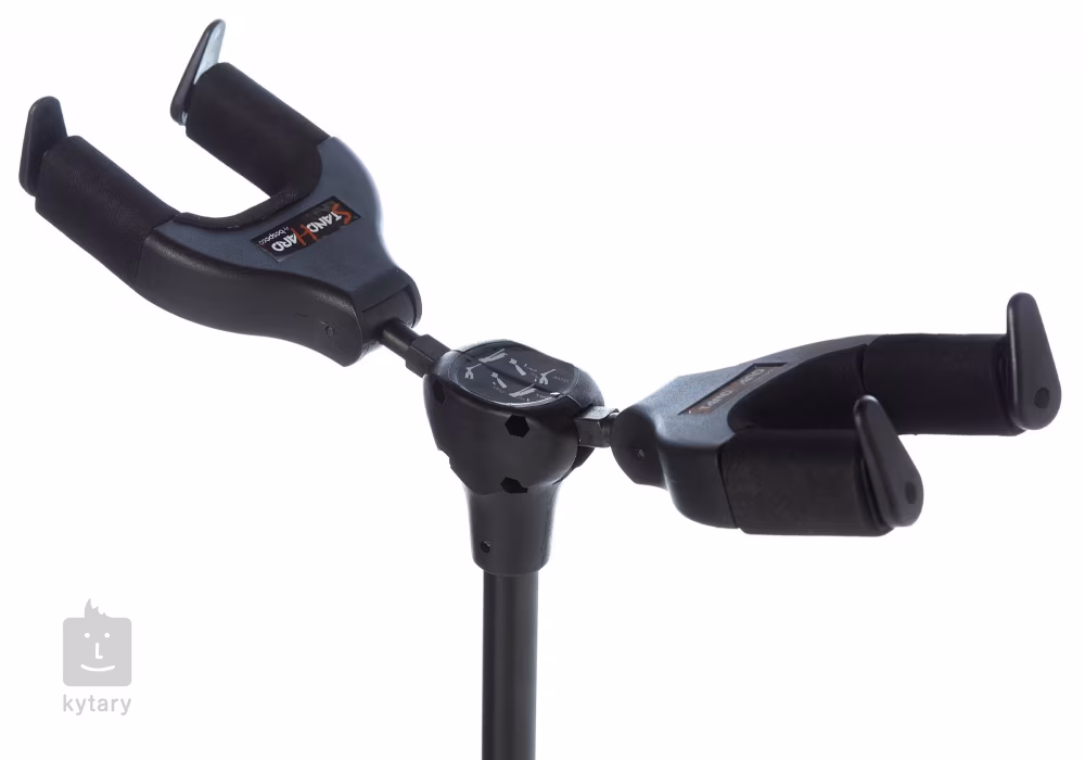 Univerzális állvány két gitár, basszusgitár vagy ukulele számára, tartós és könnyű acélból. Önrögzítő rendszerrel rendelkezik, amely megakadályozza a hangszer kiesését. Egyszerű összecsukható rendszere és minimalista méretei miatt megfelelő társ az utazáshoz. Magassága 85-125 cm között állítható, és természetesen stabil talapzat, illetve párnázott érintkezési felület is rendelkezésre áll, hogy megakadályozza a hangszer karcolódását.