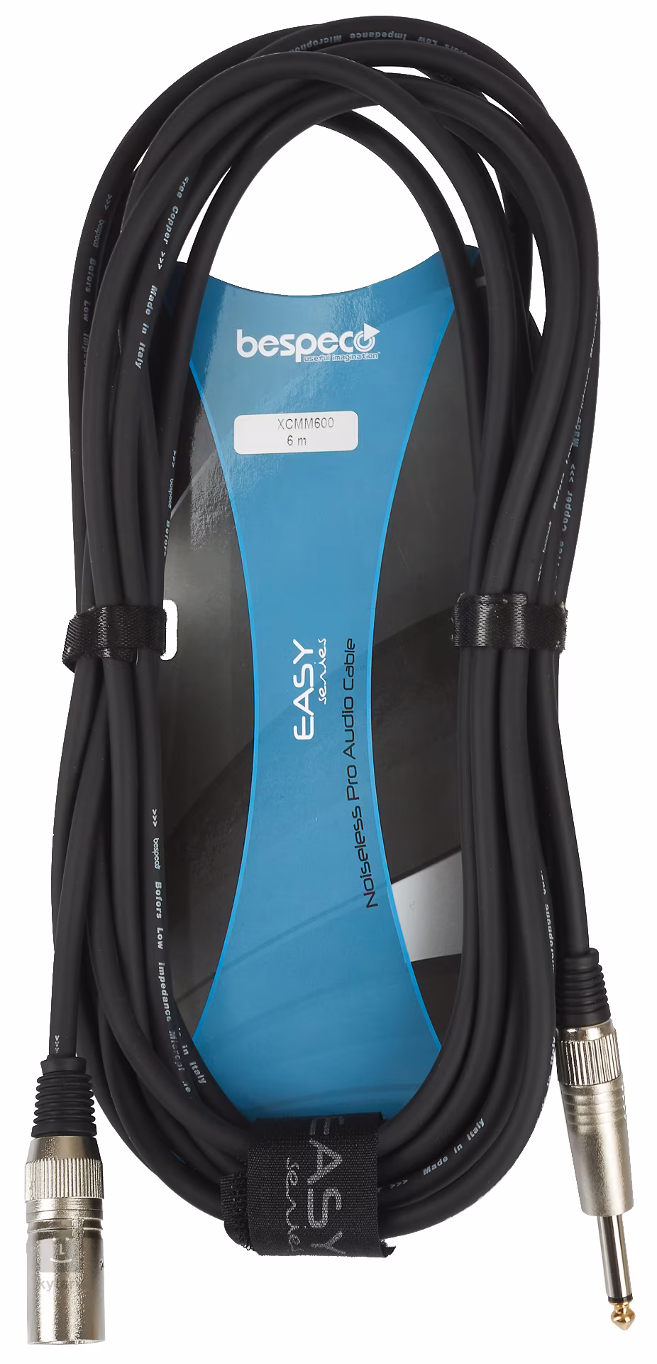 Professzionális mikrofonkábel férfi csatlakozóval és 6,3 mm-es mono csatlakozóval, vezeték nélküli rendszerek vagy vezetékes mikrofonok csatlakoztatására alkalmas. Az olasz Bespeco cég Easy kábelcsaládja 99%-ban oxigénmentes rézből (OFC) készül, és a félvezető PVC-ből készült belső köpenynek vagy a több mint 92%-os árnyékolásnak köszönhetően nem generál zajt vagy zörejt. Ezenkívül a PVC-ből és vulkanizált szilikonból álló külső réteg rendkívül tartós és rugalmas. A csatlakozók tömör fémszerkezetbe vannak ágyazva, és a vége aranyozott a jobb vezetőképesség érdekében.