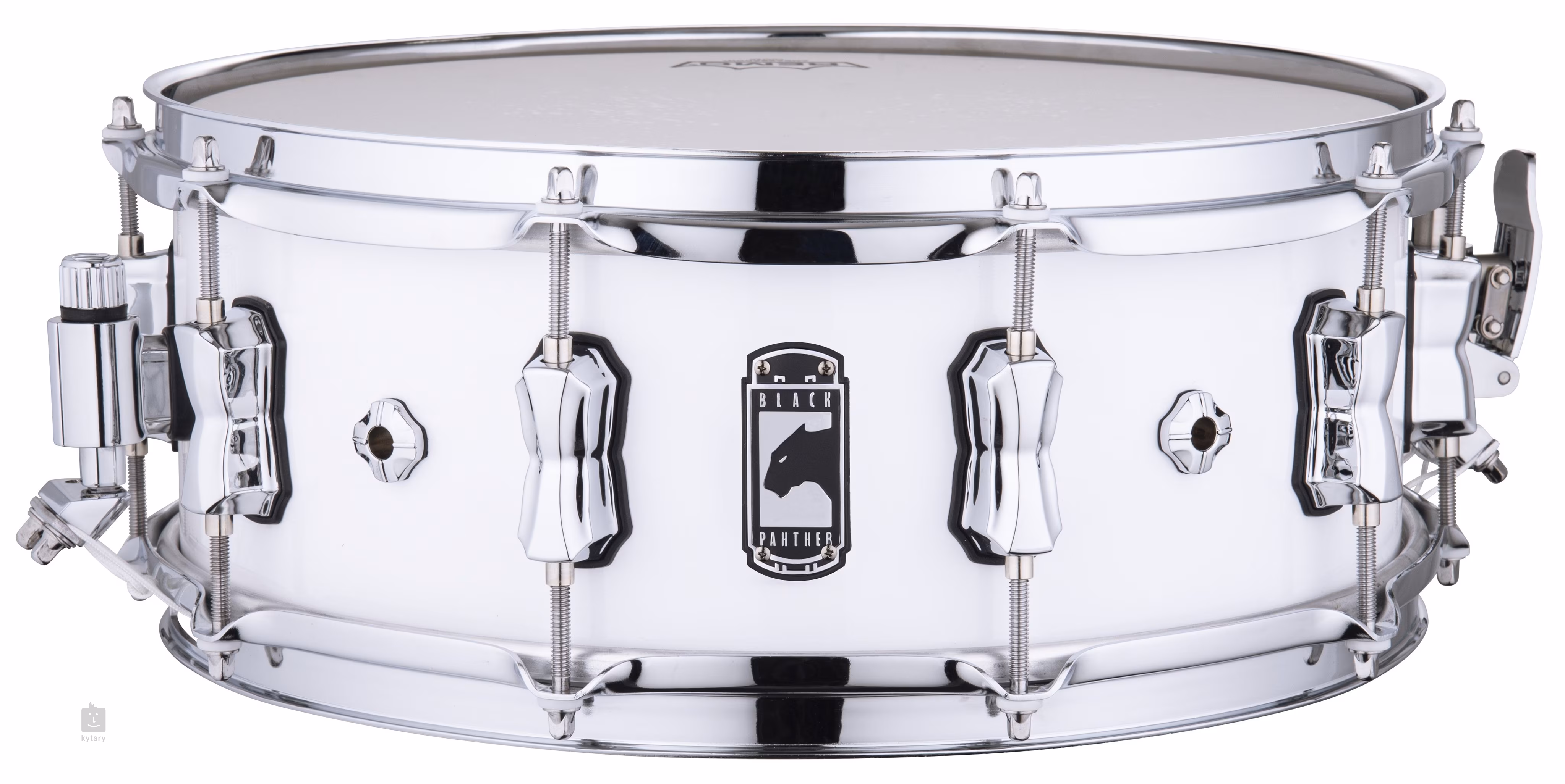 Black Panther Venom 14" x 5,5" A Venom 14x5,5" nagyon világos és élénk hangzással rendelkezik, amely hitelességet, karaktert és nagyszerű dinamikát kölcsönöz a játéknak. A 6,85 mm vastag juhartest felületét Arctic White színű borítás borítja, a krómozott hardverek pedig még dominánsabbá teszik a dobot. A REMO USA Ambassador Coated membránt a gyárban meleg hangzás és erősebb hangzás érdekében használják. A dobon három Air Vent szellőzőnyílás található.