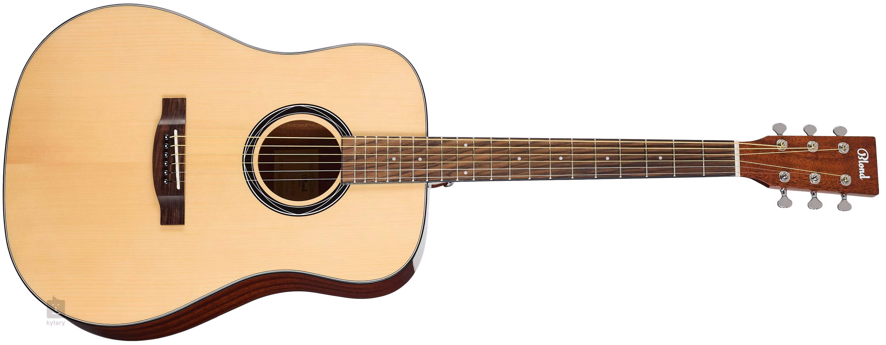A Blond D-SA S NAT egy akusztikus gitár a népszerű dreadnought testtel és félmasszív konstrukcióval. A gitár elülső része tömör lucfenyőből, míg a hátlap és az oldalak laminált mahagóniból készültek. Az okoumé nyakra egy 20 bunddal ellátott rózsafa fogólap van ragasztva. A húrok a csont fogólap fölé krómozott, öntött mechanikába vannak szerelve. A stílusos kivitelezést az alkalmazott fényes lakkozás és a hagyományos elemek hangsúlyozzák a fekete peremű fedőléc (ABS) és a rozetta formájában.
