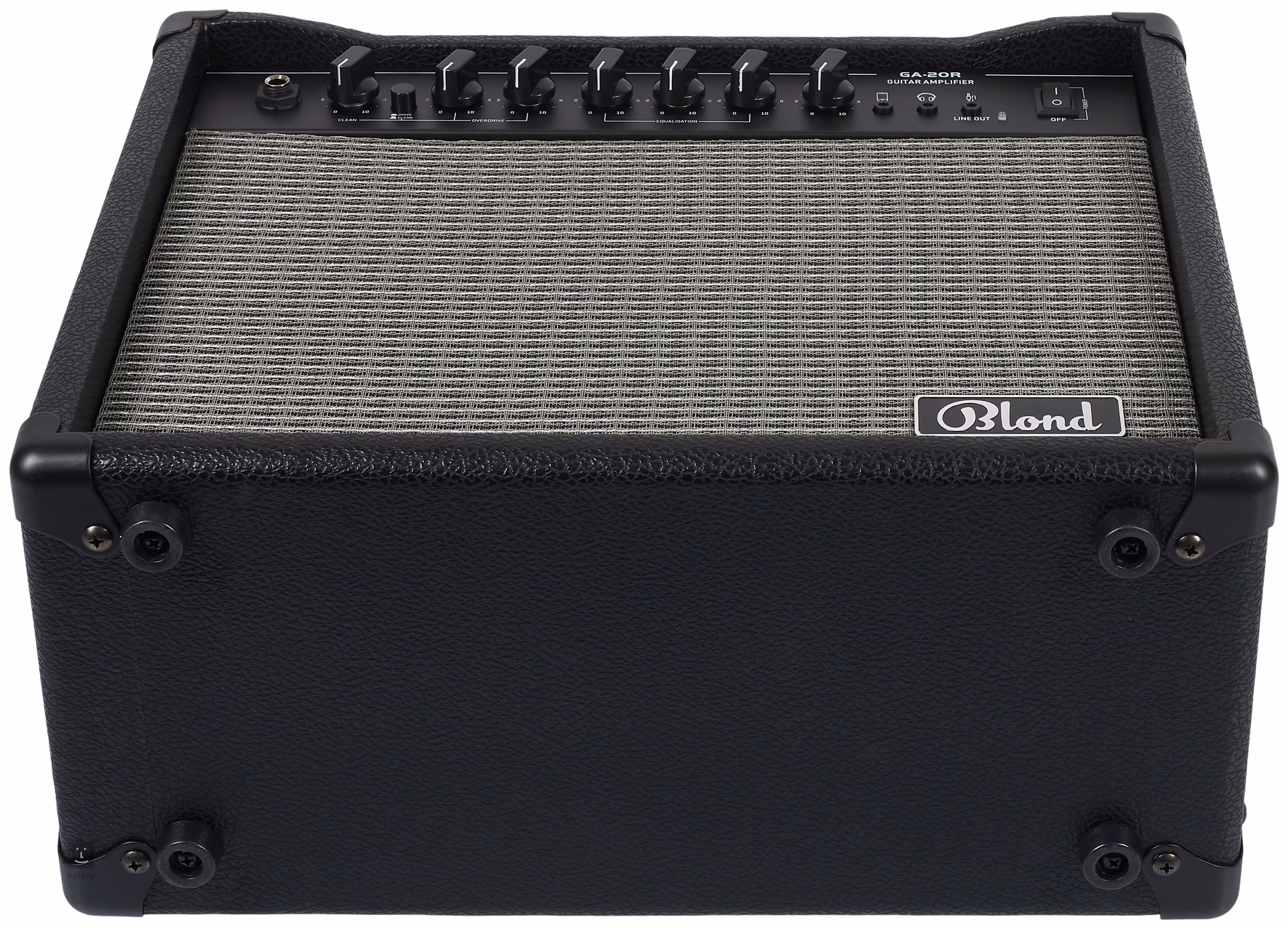 A Blond GA-20R két kapcsolható csatornával (tiszta és overdrive) rendelkezik, külön hangerő-szabályzóval, az overdrive csatorna Gain szabályzójával, amellyel beállíthatod az overdrive torzítás mértékét, háromsávos ekvalizerrel a hang/frekvencia karakterének hangolásához, beépített reverb effekttel, fejhallgató kimenettel, aux in bemenetet audio háttérzenék lejátszásához és link kimenetet.