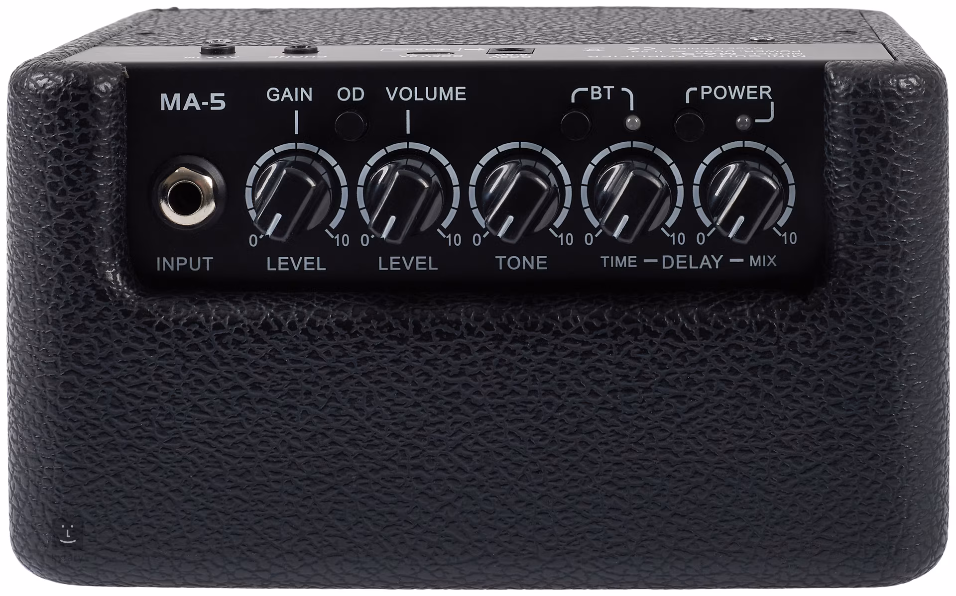 Gain Level (Input), Volume Level (Output), Tone, Delay Time, Delay Mix, OD Channel switch, Bluetooth switch