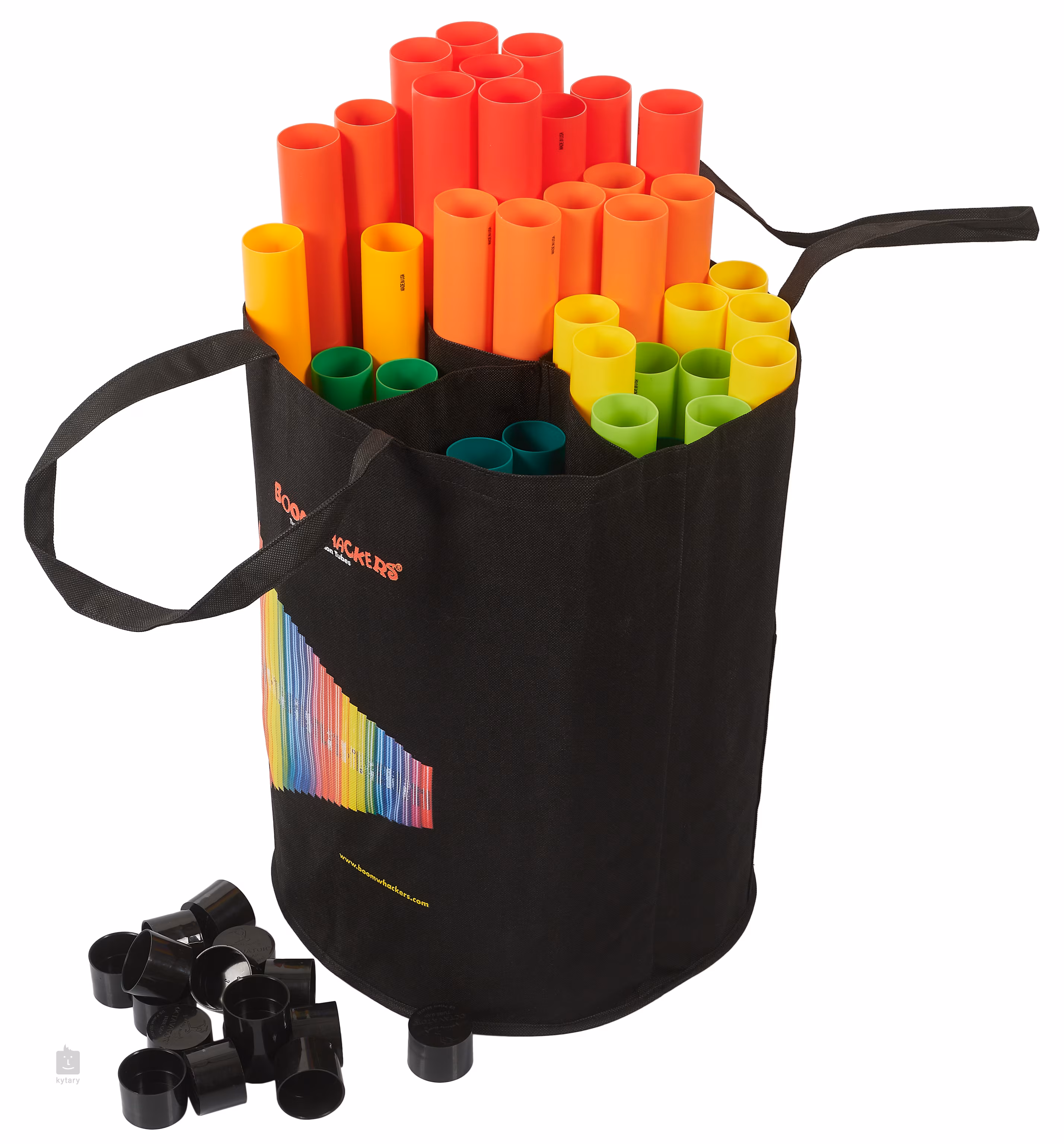 A Boomwhackers 54 Tube Classroom Pack (BW54TB) színes ütőhangszerkészlet zenei oktatáshoz és csoportmunkához alkalmas. Az 54 boomwhacker mellett, amelyeken egyszerre az egész osztály vagy akár két osztály is játszhat, tizenhat oktávát tartalmaz, amelyek az egyes boomwhackerek hangját egy oktávval csökkentik. A csomaghoz tartozik egy színes matricákból álló készlet is, amelyeket például a billentyűzetre vagy a zongorára lehet ragasztani, hogy megkönnyítsék a gyerekek számára a másik hangszer megtanulását.