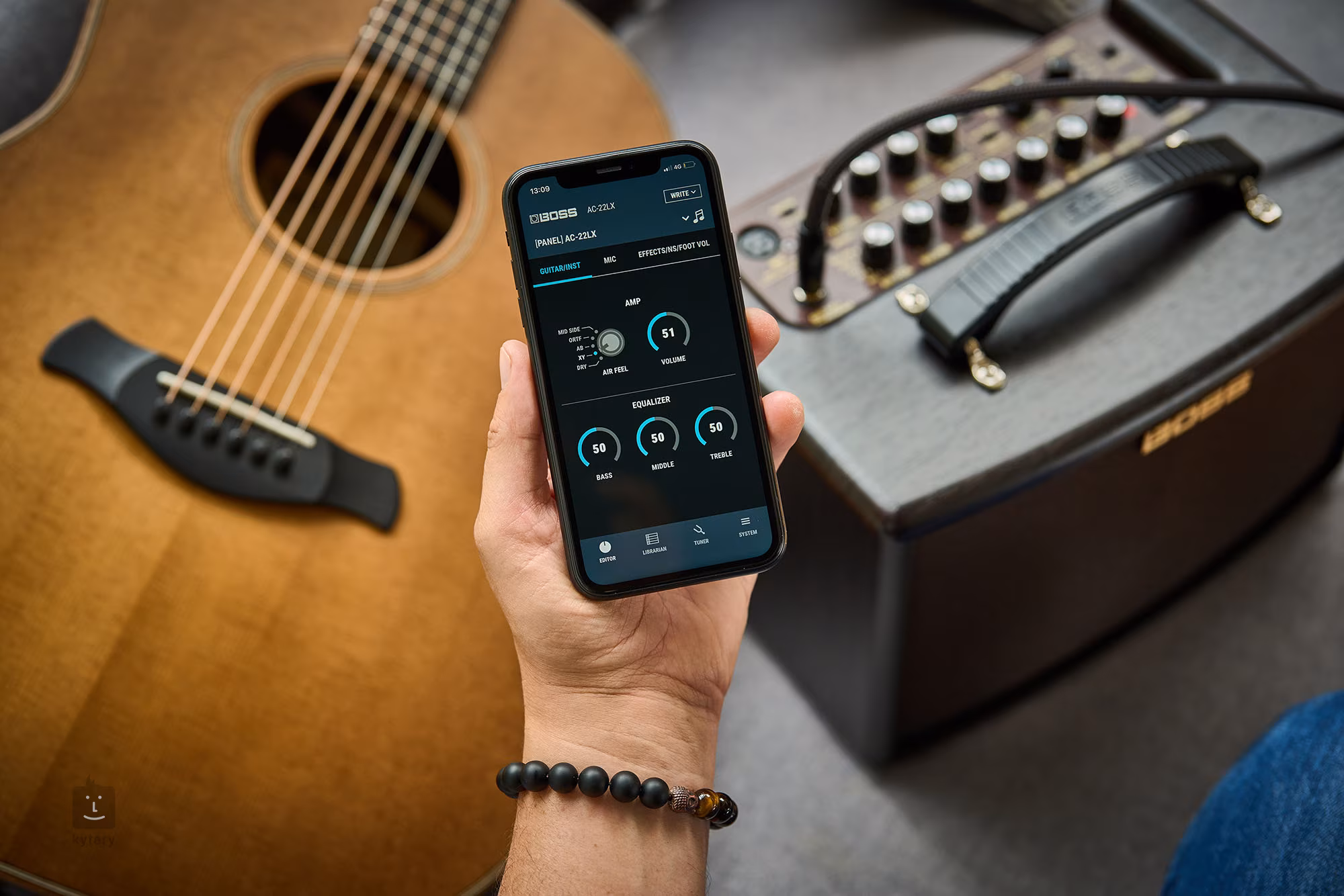 • Irányítás 2x Volume, 2x Bass, 2x Treble, Middle, Air Feel, Reverb, Rev/Chorus, Master, Phantom, Rhythm Box: Volume, Pattern, Start/Stop, Tap Tempo