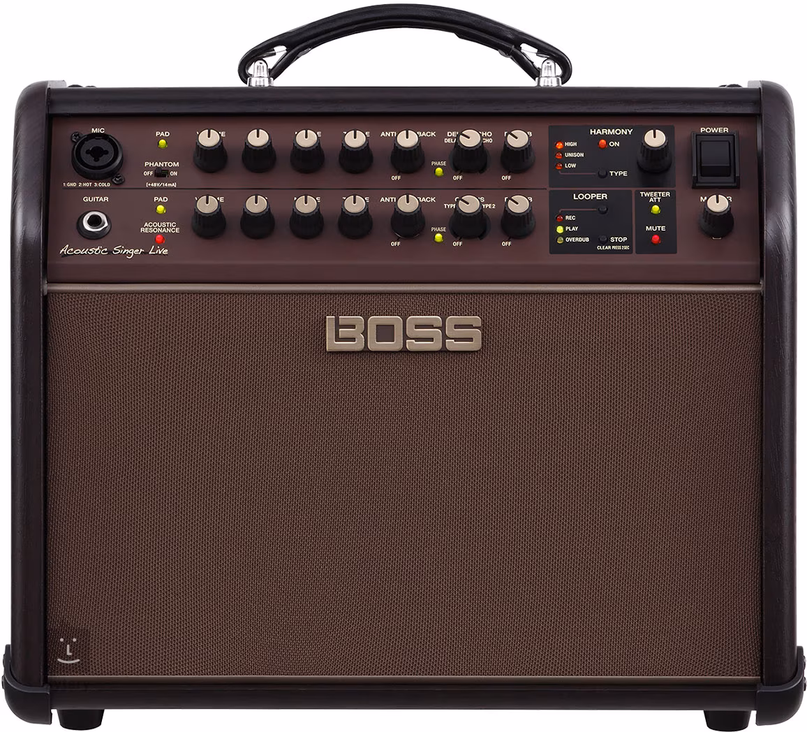 Az Acoustic Singer kombósorozatot elsősorban gitárt vagy más akusztikus hangszert használó énekes-dalszerzők számára tervezték, és mindent biztosít, amire a minőségi előadáshoz szükségük van. Mindkét csatorna háromsávos EQ-val, visszacsatolásvédelemmel és visszhanggal rendelkezik. A gitárhangzást kétféle kórussal, a vokálokat késleltetéssel és visszhanggal fokozhatod. Érdekes csavart kínál a harmónia funkció, amely automatikusan létrehozza a vokális harmóniákat a legközelebbi megfelelő intervallumban a gitár bemenetének akkord/skála elemzése alapján - kétféle harmónia áll rendelkezésre (felfelé és lefelé), valamint egy vokális duplázó effekt unisono. Hogy a dolgok még rosszabbak legyenek, a kombó beépített looperrel rendelkezik, lábkapcsolós vezérléssel és USB-interfésszel a számítógépre való feltöltéshez. A hátlapon található két XLR-csatlakozó lehetővé teszi az egyes csatornák külön-külön (effektek előtt vagy után) vagy a teljes keverék kimenetét.