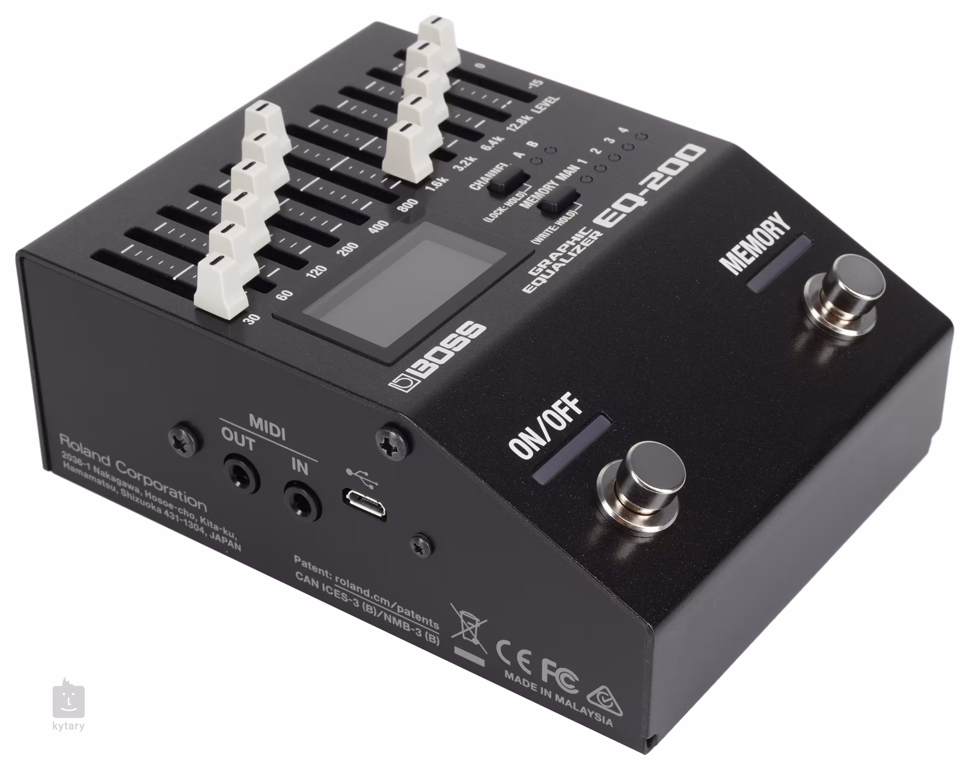 A Boss EQ-200 Graphic Equalizer egy rendkívül rugalmas, tízsávos, kétcsatornás gitár/basszusgitár equalizer, amelynek grafikus kijelzőjén az EQ görbéje látható. Az equalizer 30 Hz-től 12,8 kHz-ig működik, és teljesen intuitív vezérlést kínál tíz fader (mindegyiknél 15 dB-es erősítés/csillapítás), egy Master Level fader és egy Channel gomb formájában, amellyel a csatornák között válthatunk, míg hosszabb megnyomásával aktiválhatjuk a Panel Lock funkciót, amellyel "rögzíthetjük" az aktuális beállítást (megkerülve a fadereket).