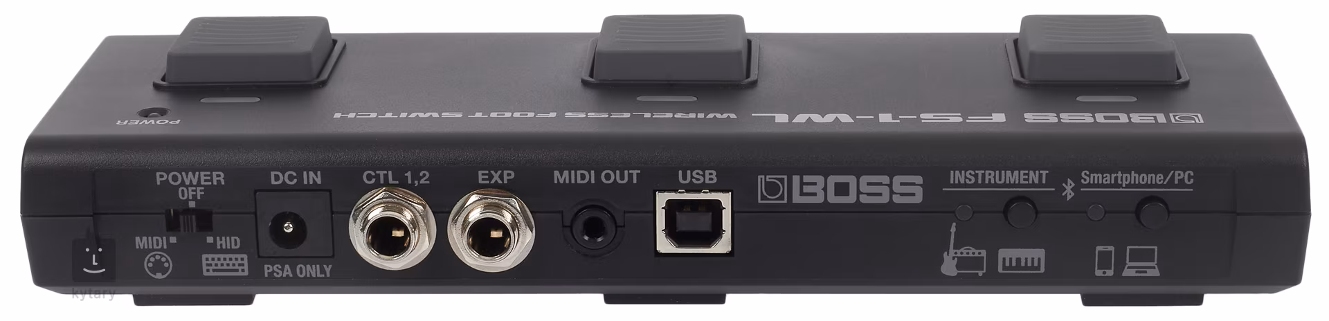 A Boss FS-1-WL egy sokoldalú vezeték nélküli Bluetooth lábkapcsoló szoftveres alkalmazásokhoz és MIDI hardverekhez. Vezeték nélkül vezérelhet YouTube videókat, DAW programokat, digitális notációs alkalmazásokat és támogatott Boss és Roland termékeket Bluetooth-on keresztül, vagy egyszerűen csatlakoztathatja a Boss FS-1-WL-t multi-effekt processzorokhoz és más hardverekhez MIDI kábelen keresztül. Csak váltson a MIDI és a HID módok között a hátlapon.