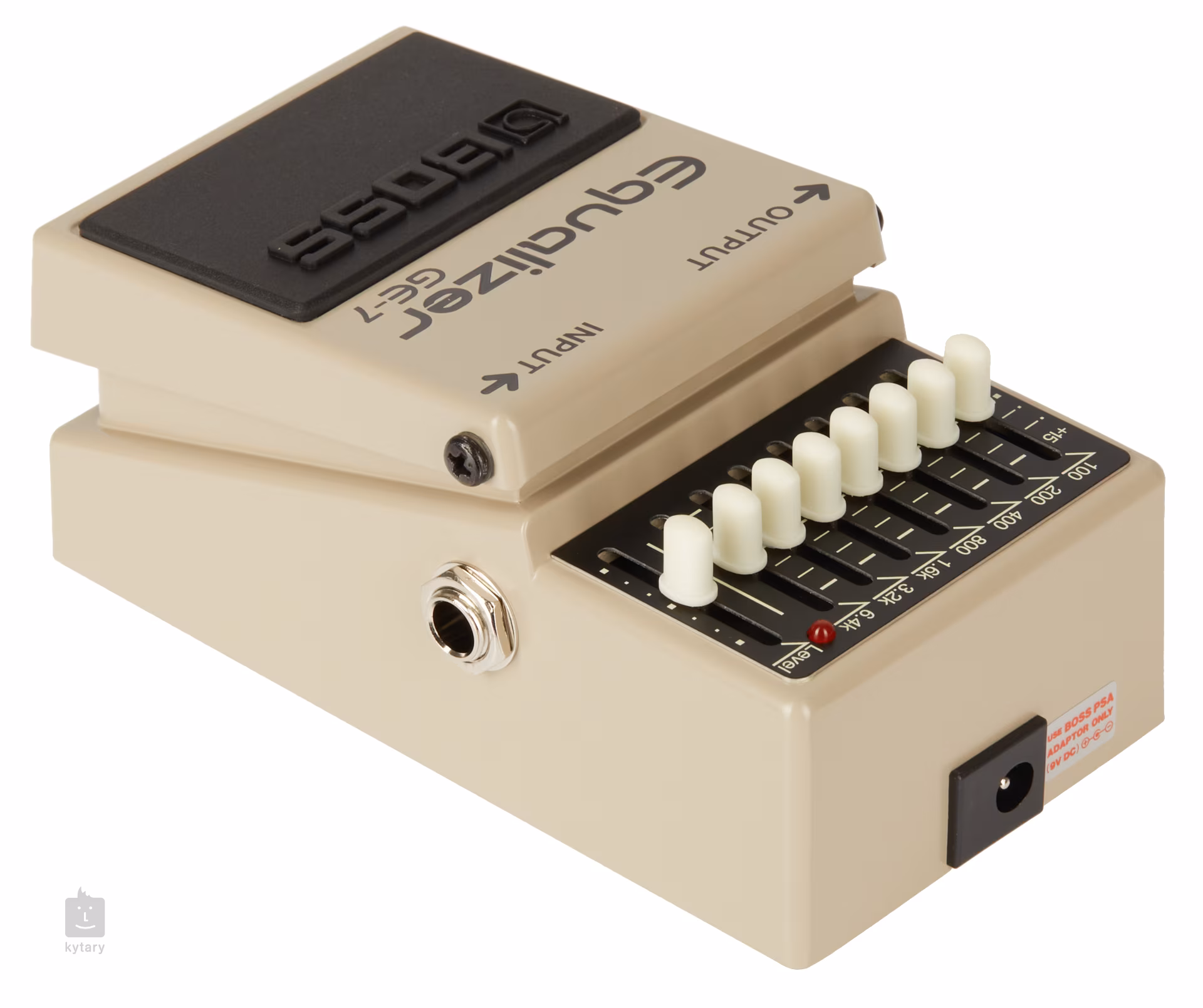 A Boss GE-7 egy hétsávos grafikus equalizer a tipikus Boss kompakt pedál formátumban, amellyel 100 Hz-től 6,4 kHz-ig állíthatod be gitárhangodat. Minden sávban tizenöt decibellel állíthatod a boostot vagy a cutot. A doboz tökéletesen kiszolgál a hangzásod állandó EQ-jaként, ahol képes kiküszöbölni a visszacsatolásokat (különösen torzító/overdrive pedálok használata esetén), valamint hangerő-növelőként a gitárszólók és -nyalábok hangzásához.